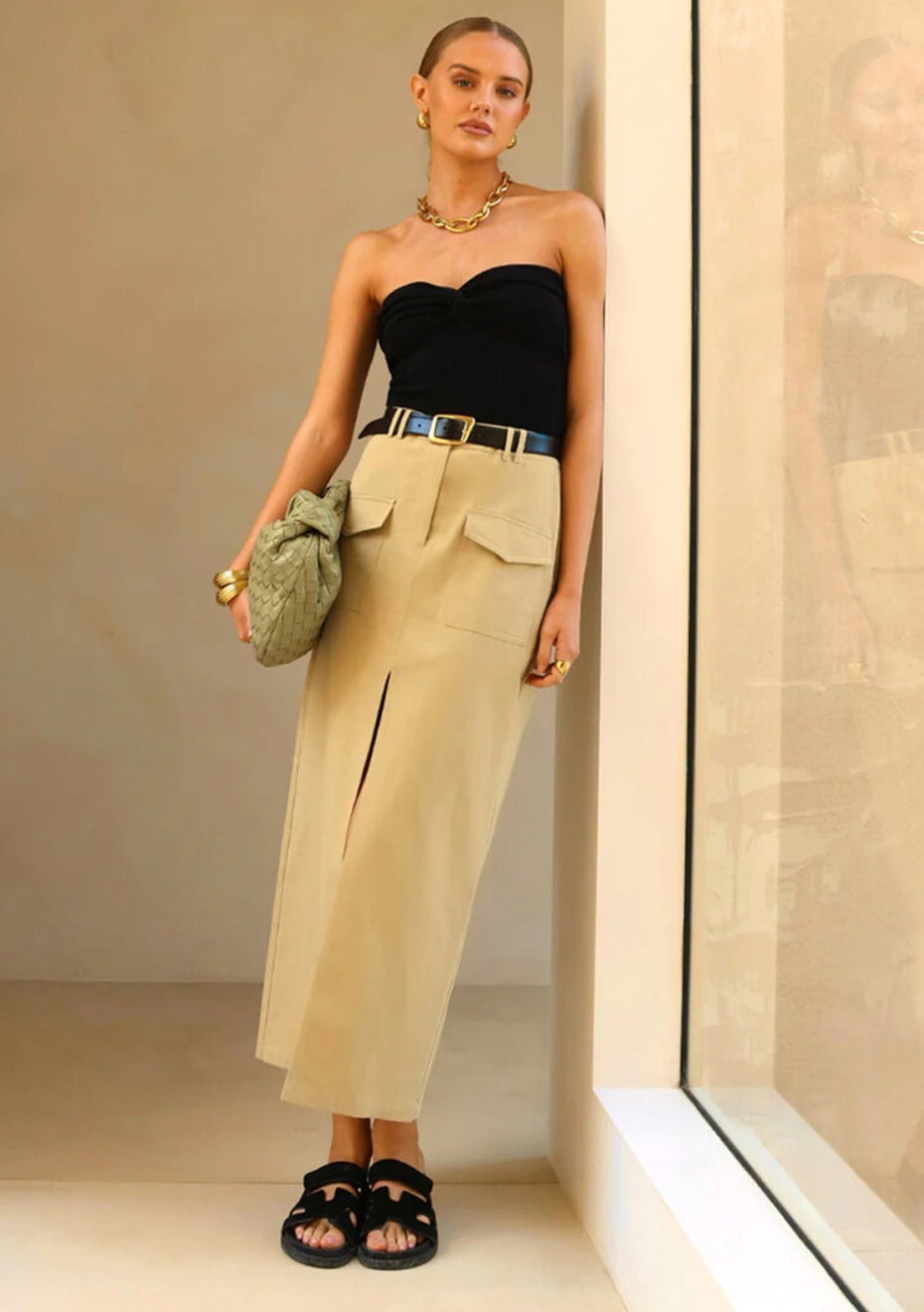 Madison The Label - Evan Midi Skirt - Moss