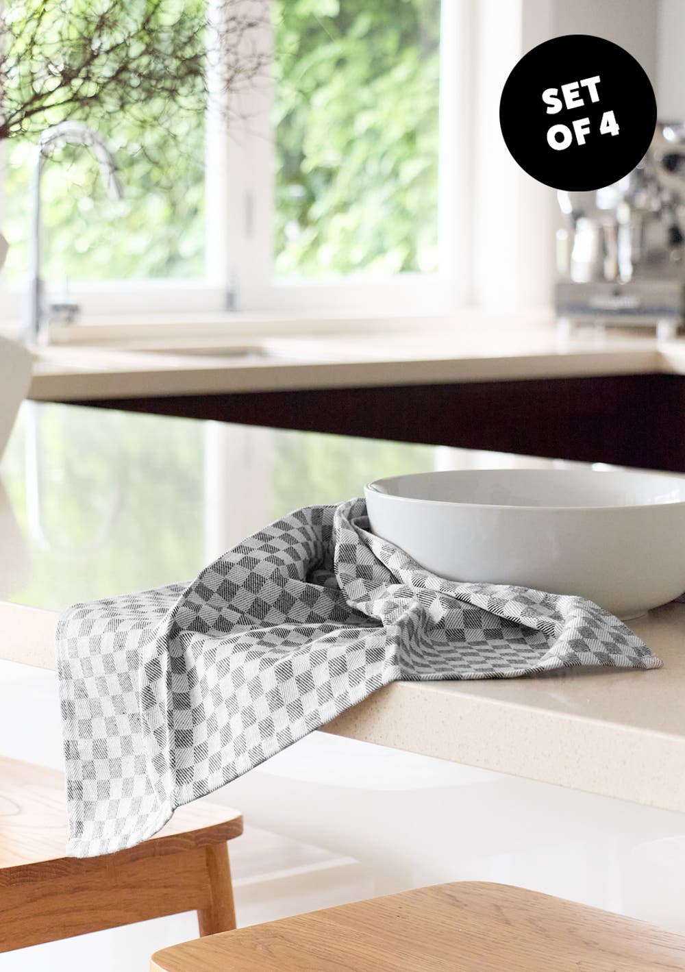 George Collective - 100% Cotton 4 Pack Tea Towel - Slate Checker