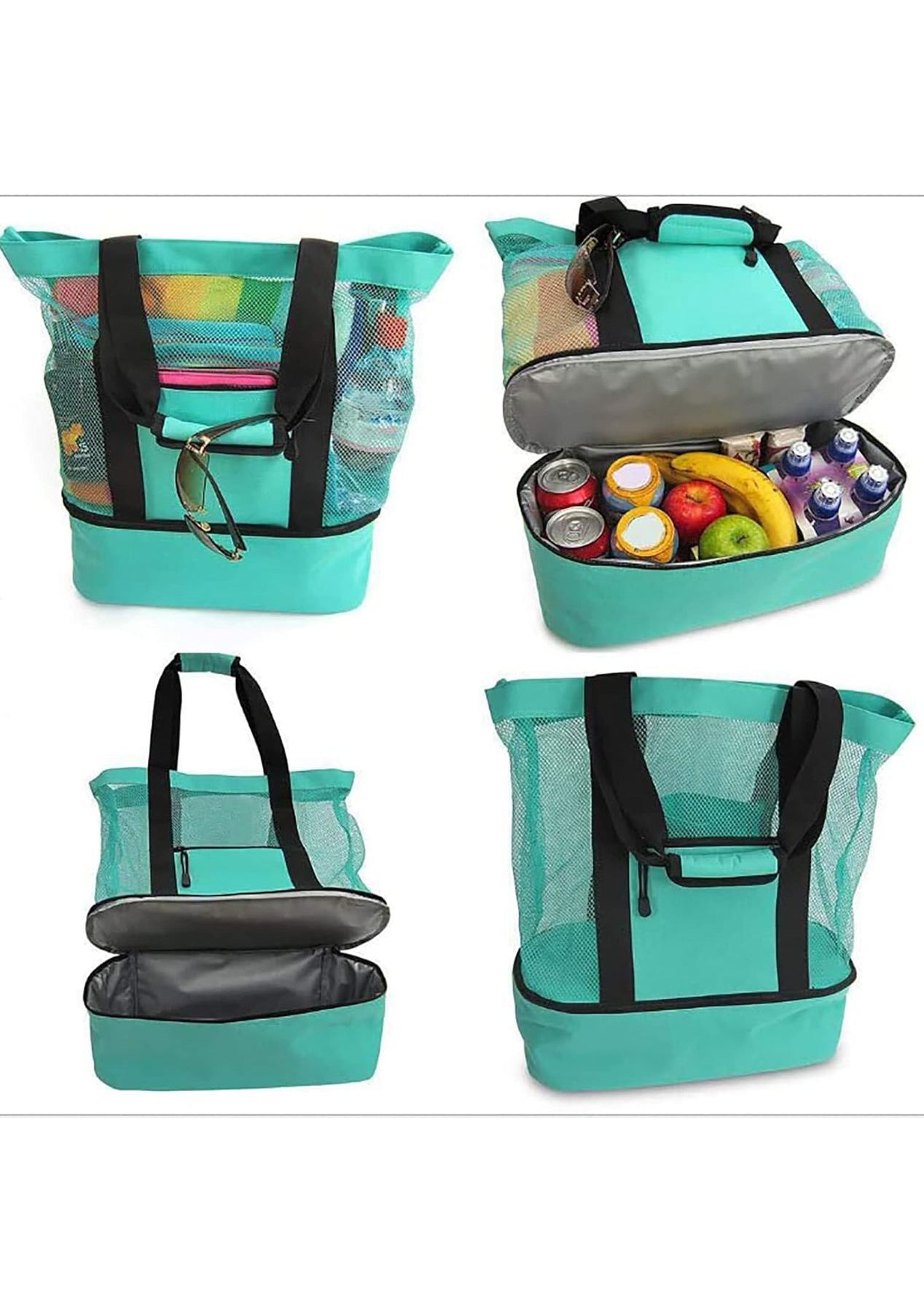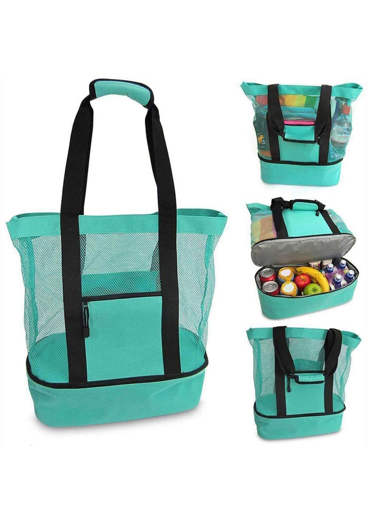 Extra Large Mesh Beach Bag with Cooler Compartment - Green