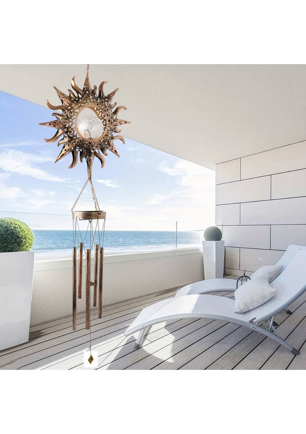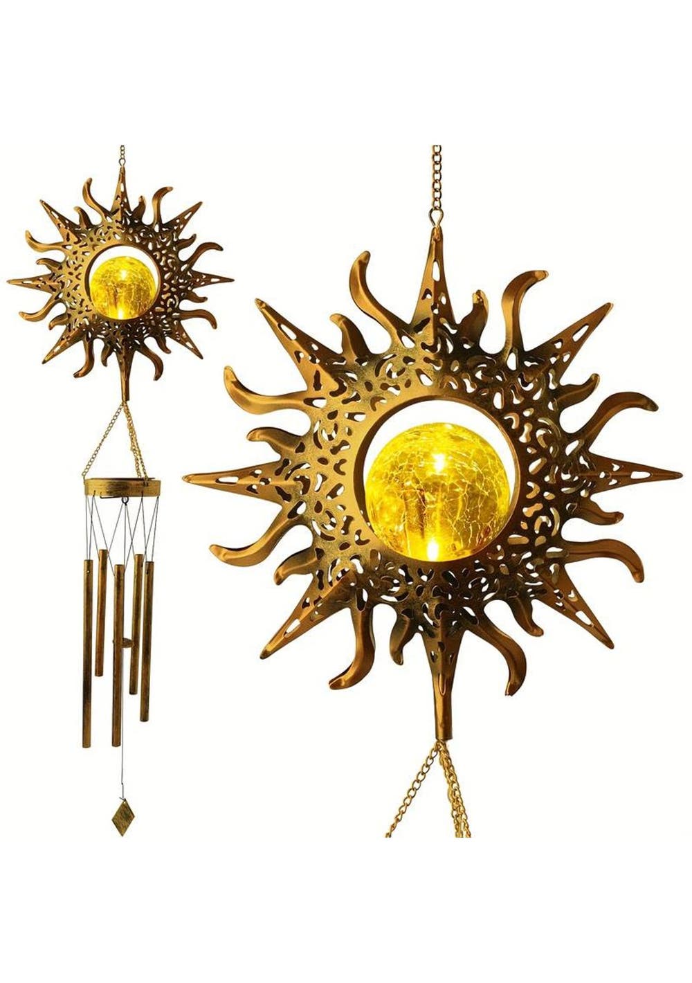 Product Description:Energy-saving and eco-friendly, no wiring or external power supply is required, charging automatically in the daytime and light up at night.The wind chime has a cracked glass ball like a beautiful crystal ball which provides warm light and a romantic atmosphere for your yard.Each metal tube has its own unique tone when it collides. Made of aluminum, it can stays the test of time. Wind chime sounds is so soft and relaxing in the breeze.Coming from your garden, is the sound of nature, sounds so soft and relaxing in the breeze. The nature with the power of the wind to playing music, nature is singing to you and your beloved ones, how pleasant.The wind chime can be placed both indoors and outdoors, which are ideal gifts for decorating courtyard, garden, patio, backyard, a romantic and mysterious space could be created easily.Product Specification:Material: Iron + GlassColor: BronzeLED Light Source: 1 x warm whiteBattery: NI-MH 1.2V AA600MA batteryWorking Time: 6-8hCharging Time: 8-10hSolar Panel: PolysiliconLumens 6-7LWaterproof function: IP65Package Inclusion:1 x Solar Chime Light