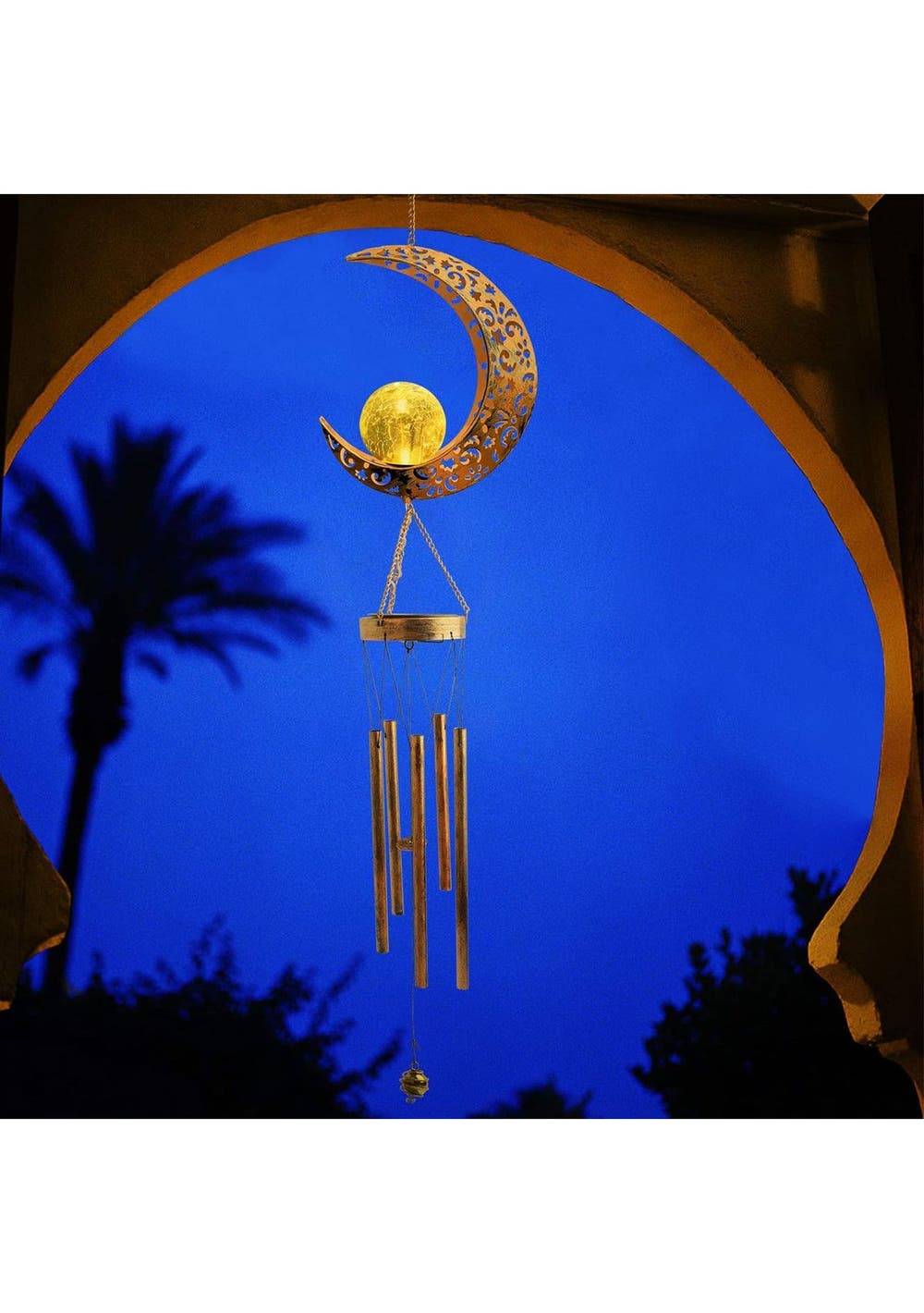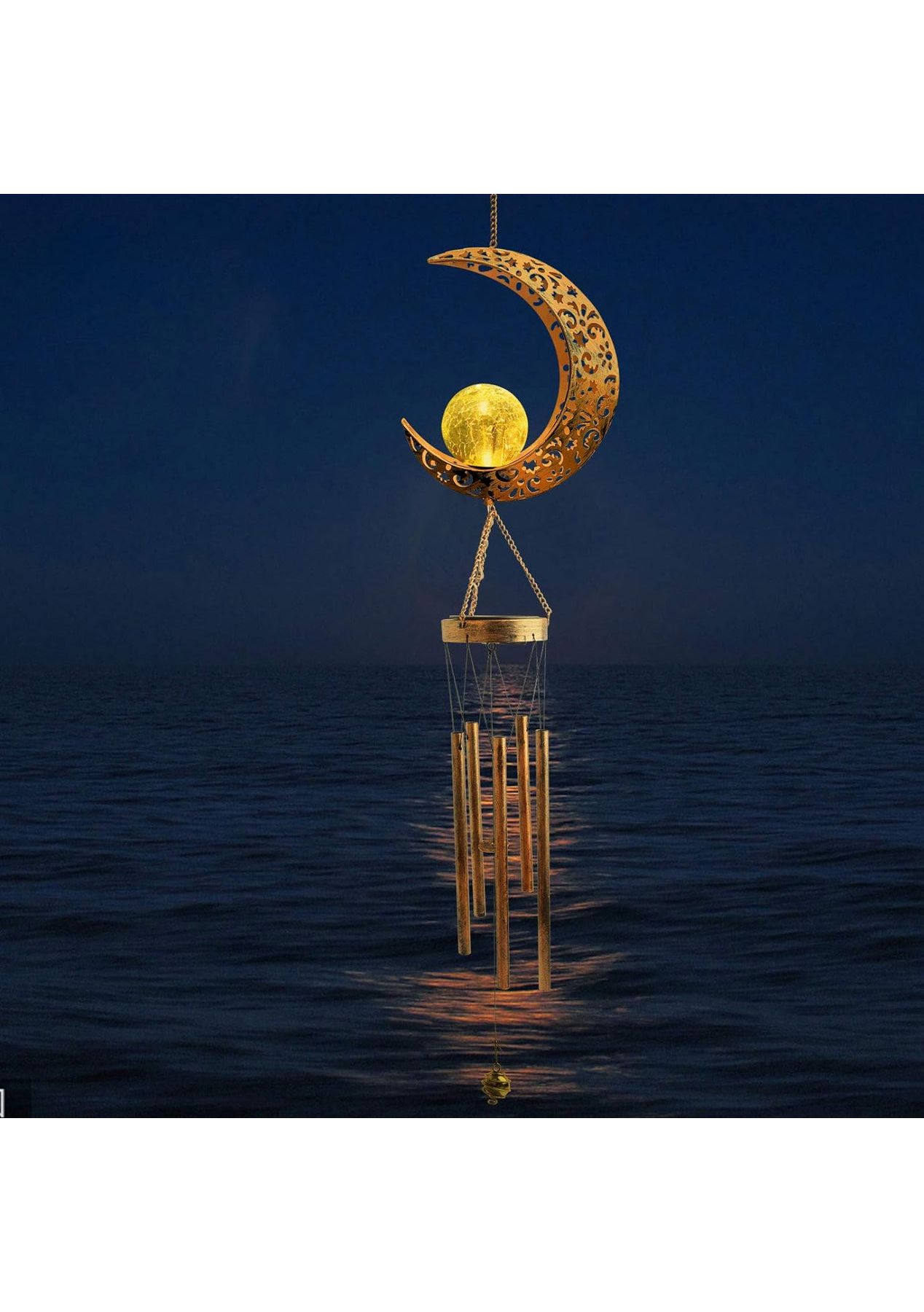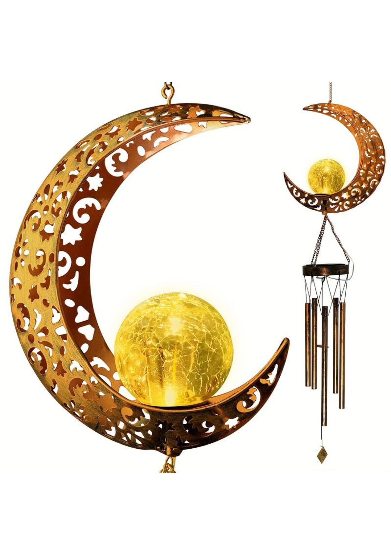 Outdoor Wrought Iron Hanging Solar Powered Wind Chime Light - Moon