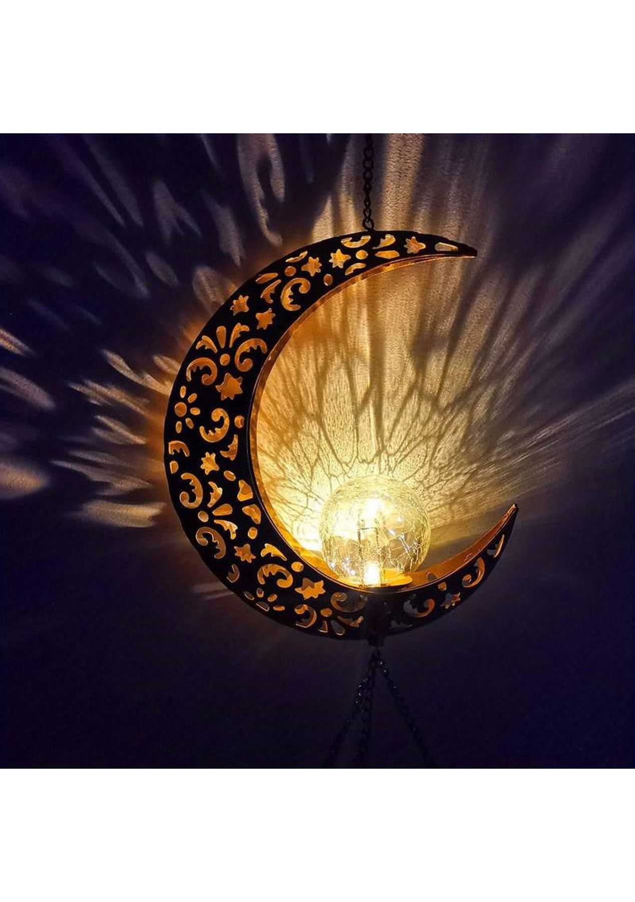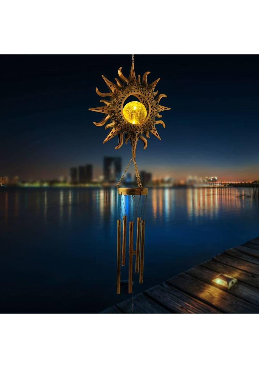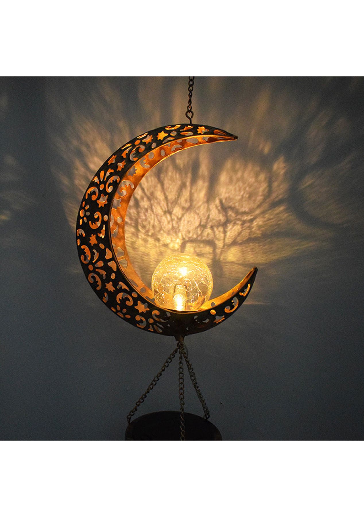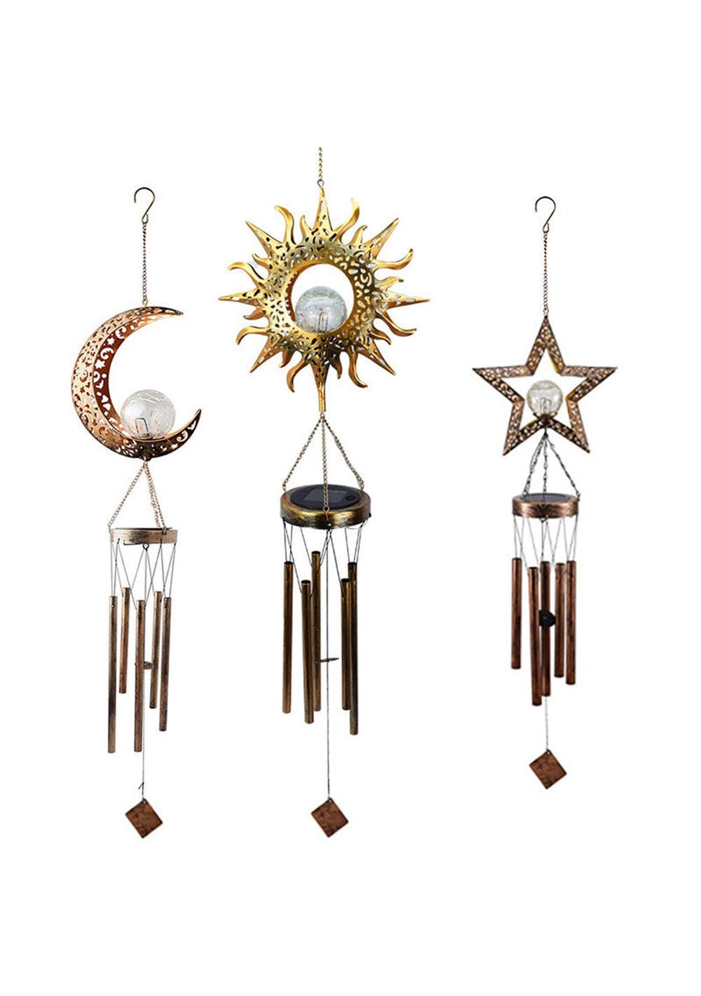 Outdoor Wrought Iron Hanging Solar Powered Wind Chime Light - Moon