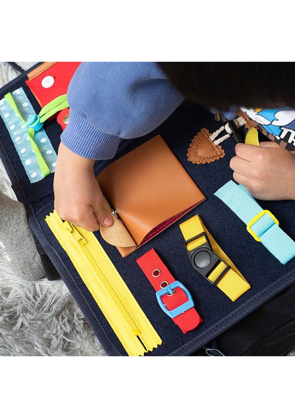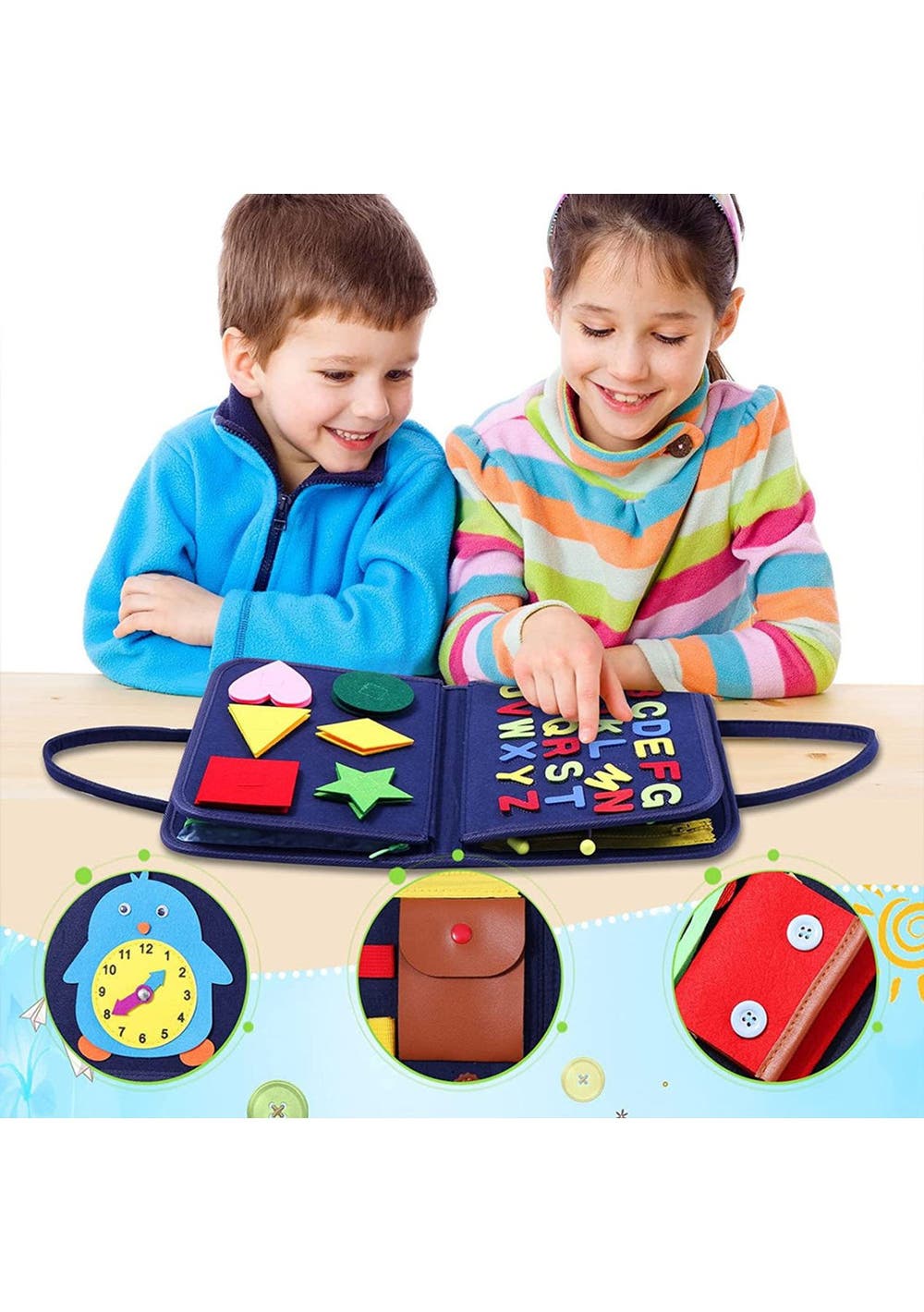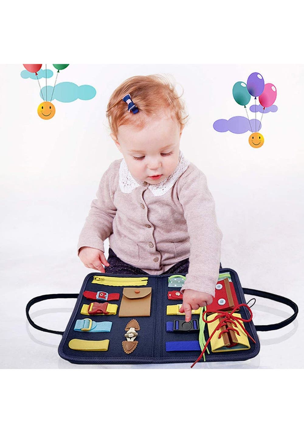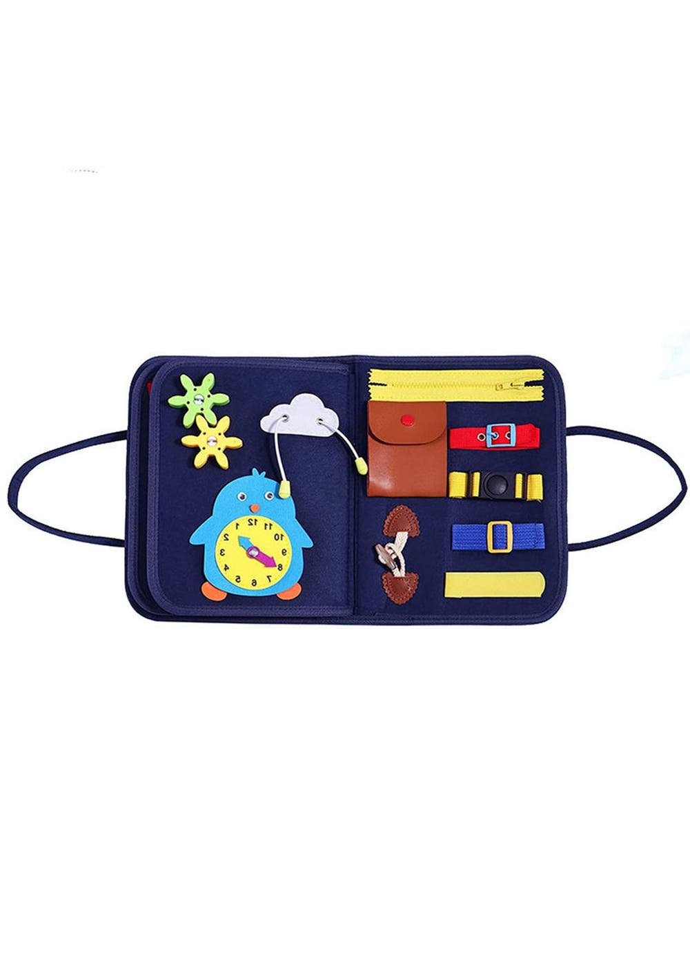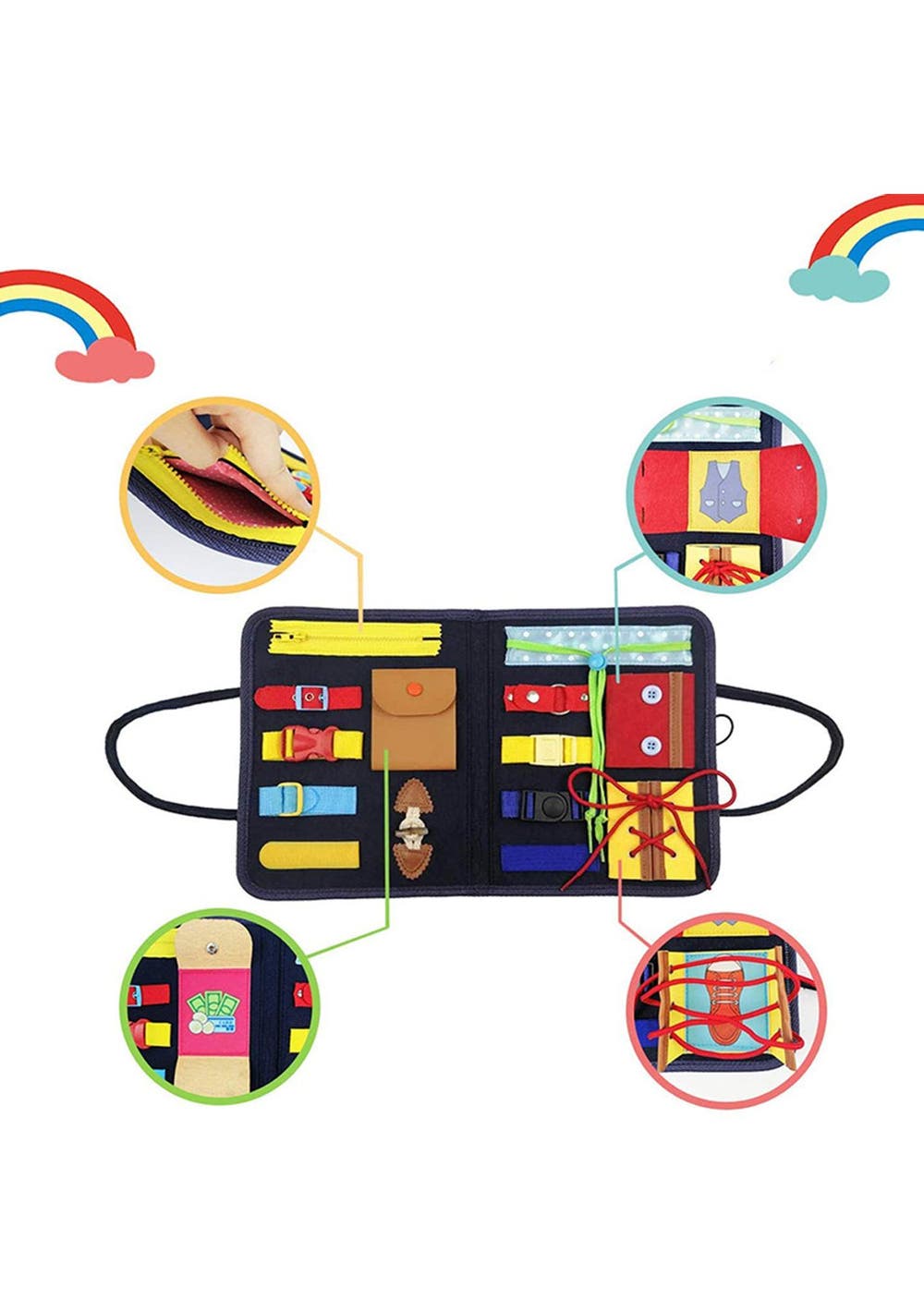 Product Description: There are different types of basic skills to learn and are reflected in the form of buckles, buttons, zips, pockets, laces, watches, and much more. There are also detachable pictures, English letters, and numbers. The board offers a variety of sensory games to accommodate the different needs of children.The most effective way to learn is to play games. This activity board for children from 1 year, can help children dress themselves, develop their practical skills, improve their perception of images and colors, and train children's independence.The occupation board is made of soft felt. It has no sharp edges, is non-toxic, tasteless, and safe for children's skin. The board can be flexibly flipped over and objects will not fall off easily. In combination with the bright colors, it can improve the concentration of children.The board is lightweight and equipped with a portable handle. Children can therefore easily carry the toy so they can play with them, perfect for indoor and outdoor use.This educational toy is perfect for curious boys and girls aged 1 to 3 years. Parents can accompany their children in learning basic skills. It is the perfect gift for a growing toddler.?Product Specification:Material: FeltSize: 46 x 27.1 cmWeight: 400gFunction: Kid s Educational Toy?Package Inclusion: 1 x Sensory Toy