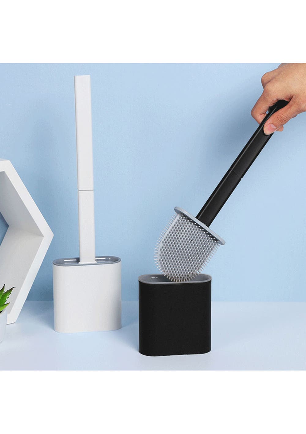 Features  The toilet brush with holder can keep the toilet brush dry and odorless.  Flexible silicone head, thoroughly clean all dead corners.  The upgraded version of the soft and flexible TPR head is easy to use. clean and does not collect water.  The long ergonomic handle is easier to use. use and shortens the cleaning time, thus avoiding getting your hands dirty during cleaning.  Naturally air dry, no splashing, no water accumulation.  Package Include  1 x Flex Silicone Toilet Brush with Holder  1 x Wall Mount Sticker