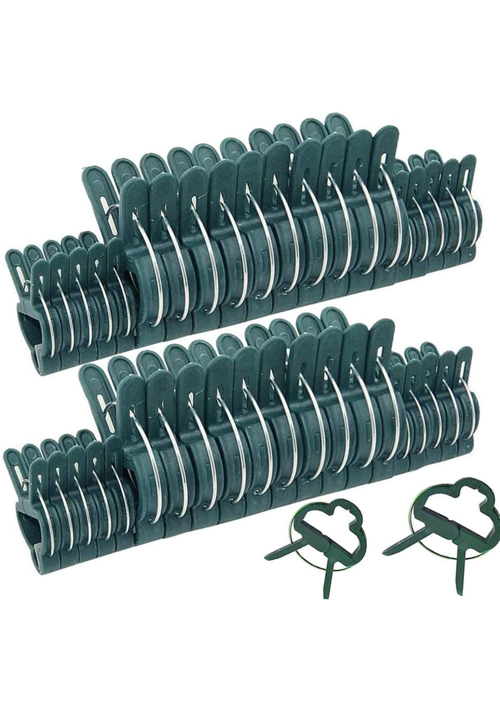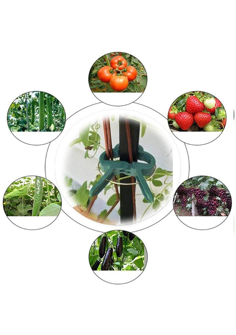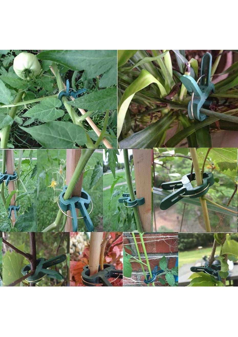 Features  40 green plastic plant clips, 20PCS small plant clip, size is 4.2cm, 20PCS large plant clip, size is 6.2cm  Help your plants, flowers or vines grow in a controlled way  Keep your vegetables, flowers, climbing and creeping plants or small trees growing upright, support or straighten plants and stems to resist high winds, and support fruit-rich branches to prevent crop loss, such as tomatoes, beans, cucumbers, Zucchini, eggplant  Plant support clips have enough space to accommodate plant stems without causing damage to the plant stems, they are often used to help support tomatoes, vines and vegetables to grow Package Includeds:  20 x small plant clip  20 x big plant clip Material: PP Product dimensions (LWH): 4.2x3 /6.2x4.7 cm Package Weight: 200 g