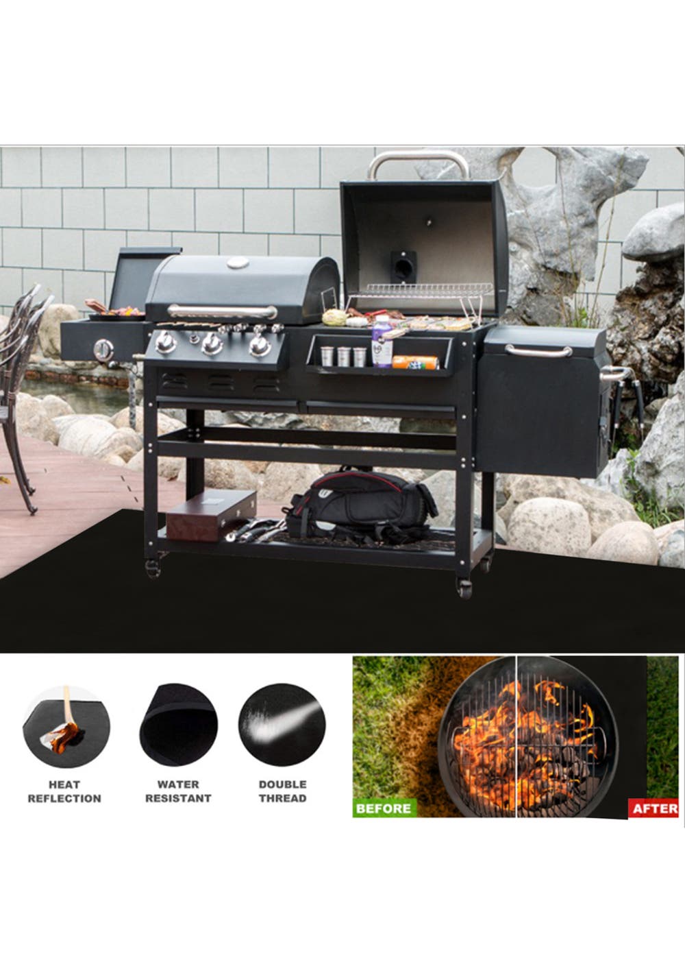 High Temperature Resistant: this under grill mat is made of fiberglass with silicone coating on both sides, it can withstand high temperature on both sides, it can resist sparks, charcoal, ash, flames to protect your deck and patio from high temperature damage.