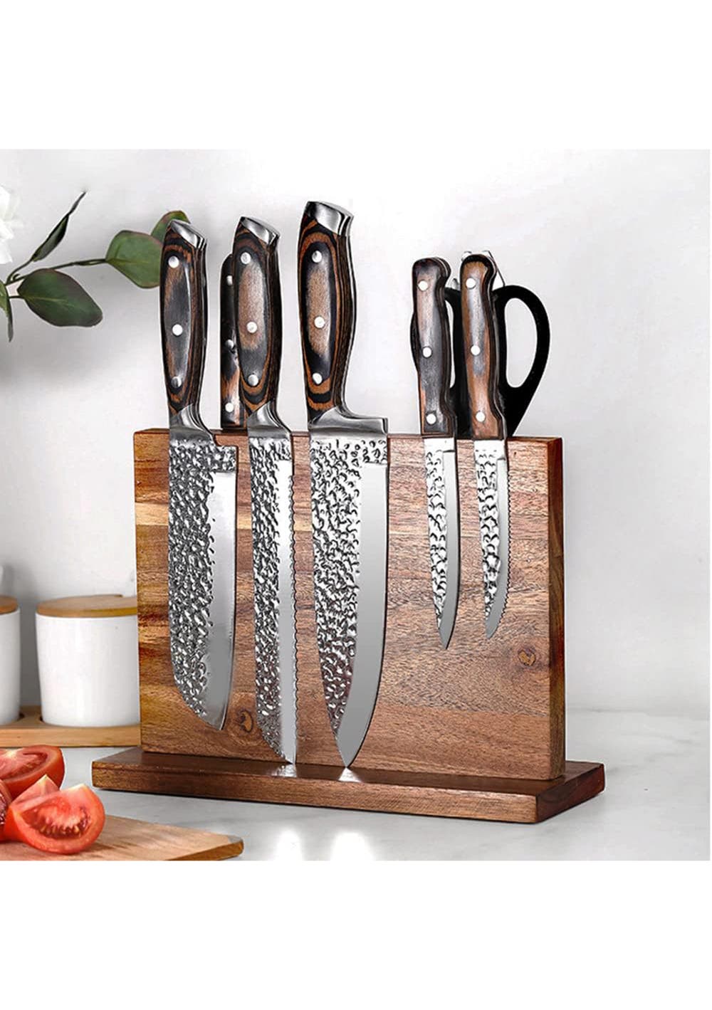 Sturdy and Durable Construction: Made from high-quality wood, this magnetic knife block features an easy-to-clean surface, ensuring optimal hygiene. Rubber feet provide a stable base, preventing slipping when knives are removed.