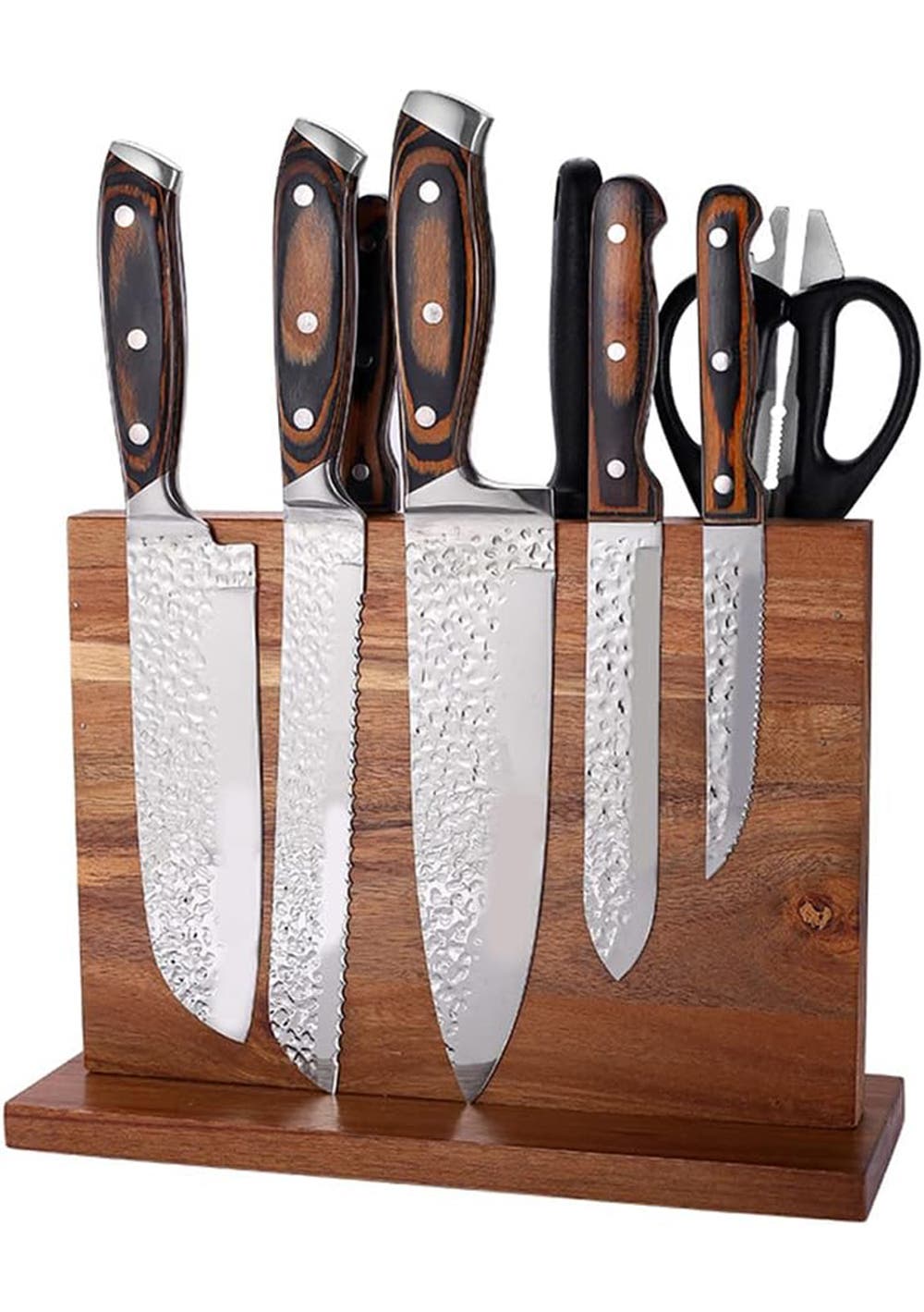 Solid Wood Magnetic Knife Block, Double-Sided Magnetic Knife Holder with Strong Neodymium Magnets, Space-Saving Knife Storage for Kitchen Counter
