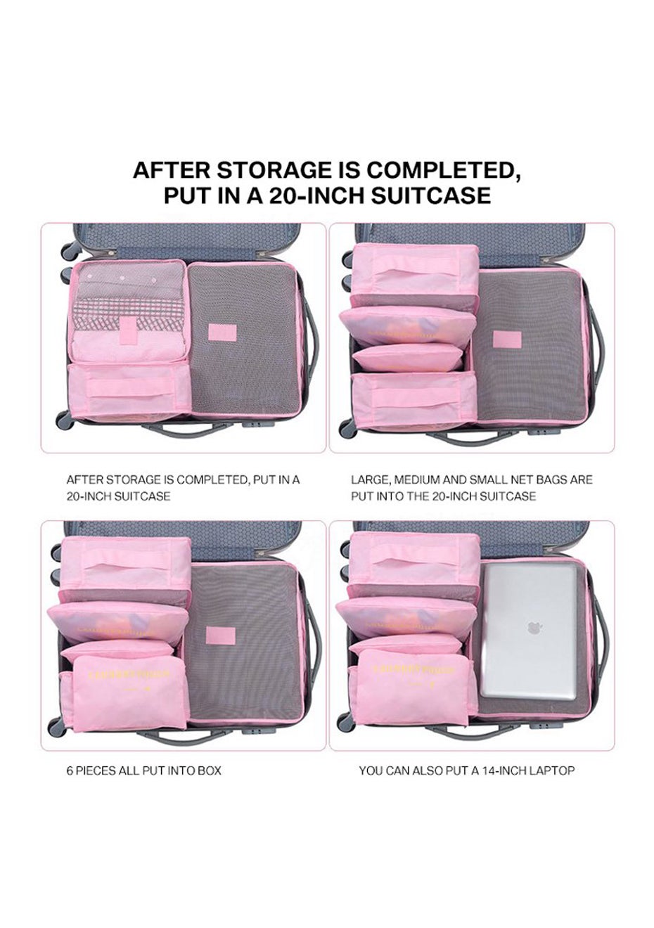 6PCS Packing Cubes for Travel Luggage Organiser Bag Pink<br>Material: Polyester<br>Product dimensions (LWH): 40×30.5cm<br>Package dimensions (LWH): 20 x 15 x 4cm <br>Weight:180 g<br>KEY FEATURES:<br> High Quality: Packing cubes made of high quality waterproof Nylon, reusable, easy to clean and carry on;<br> 6 Packing Organizer: 3 packing cubes for travel + 3 Pouches allow for neatly organzing items with easy.Satisfy all your travel needs;<br> Save Space: Save space in your luggage/bag ,help you classifying your belongings,make full use of the spare, also avoid the luggage overweight;<br> Clothes Protector: They can keep your clothes, footwear, toothbrushes, dirty laundry and so on in organization, they also can protect suits from dirt, dust, damp and bacteria;<br> The Best Choice for Travel: Perfect travel accessories to keep your luggage neat and tidy suitable for for household, travel, vacation, business trip and outdoor camping, lodging.<br> Package Include <br> 1 x 6PCS Packing Cubes for Travel Luggage Organiser Bag