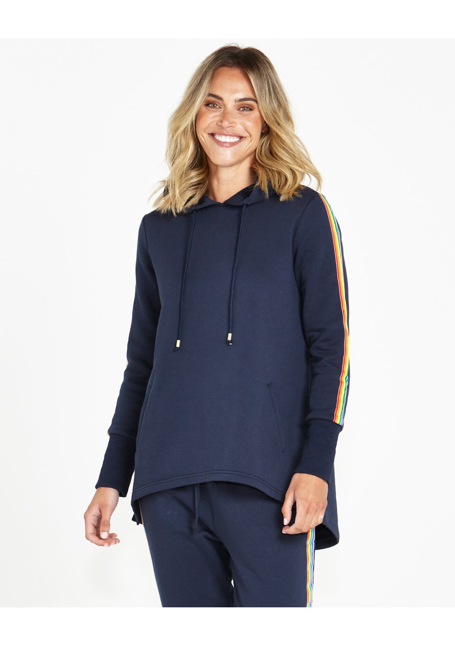 Betty Basics - Huntington Stripe Hoodie - Dark Blue Rainbow