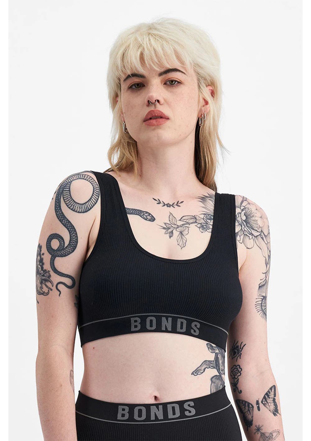 Bonds - Womens Retro Rib Seamless Scoop Crop - Black