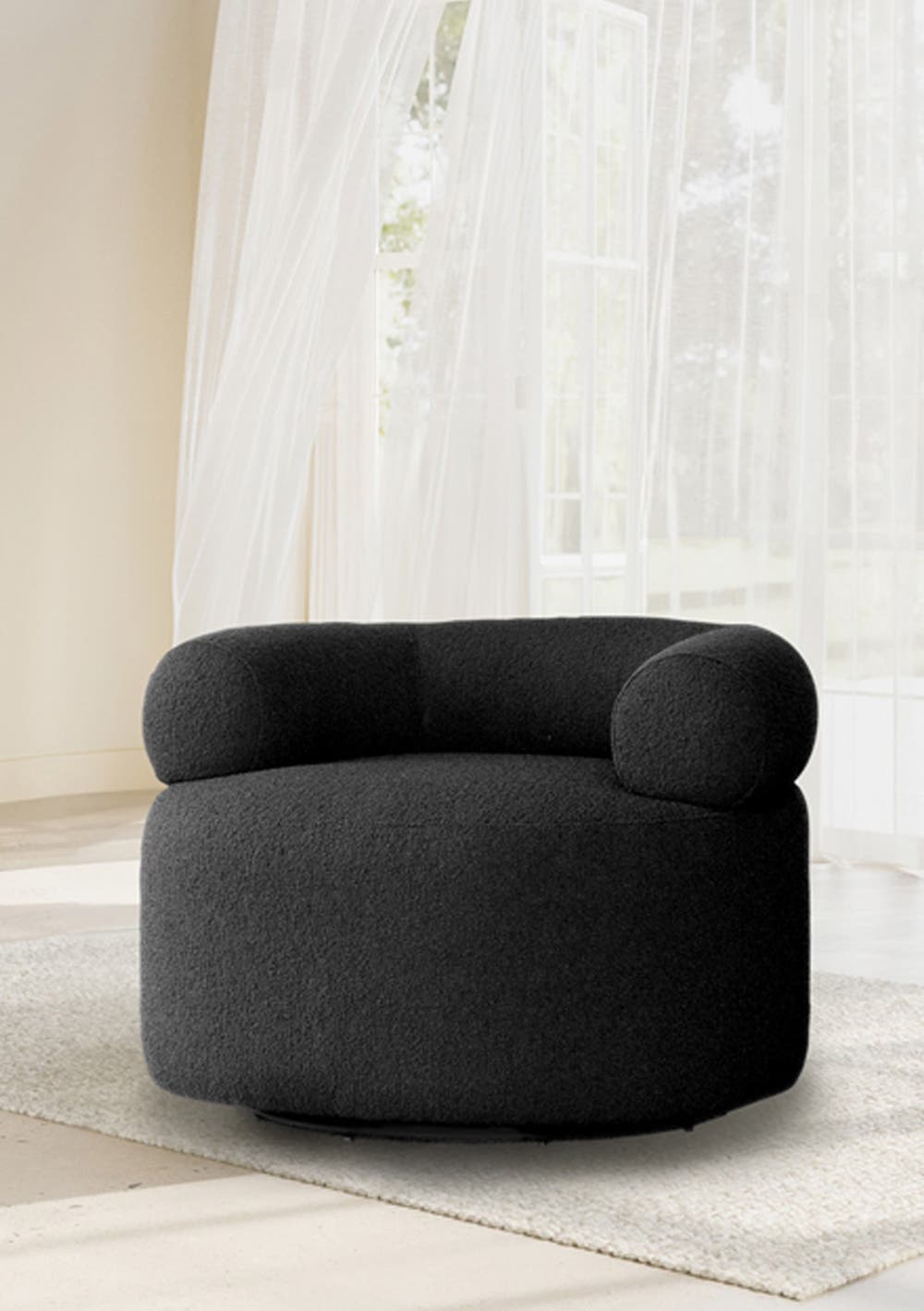 George Collective - Bolster Back Boucle Swivel Chair - Black