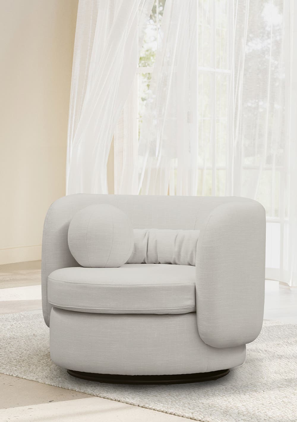 George Collective - Round Cushion Swivel Chair - Natural Linen Look