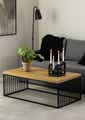 Ready to make a statement? Then prepare for this trendy rectangular coffee table. To achieve that natural, cool vibe, the tabletop has a wild oak look while the sides are decorated with vertical steel wires. Such a combination elevates the coffee table and gives it a modern, cool feel. Key features: -Modern rectangular coffee table with a cool feel - Sturdy rectangular metal frame ensures stability - Wild oak look tabletop - Sides decorated with vertical steel wires - Danish design - FSC™ Certified Product Dimensions: 120cm (W) x 60cm (D) x 42cm (H) Max weight capability main surface: 20kg