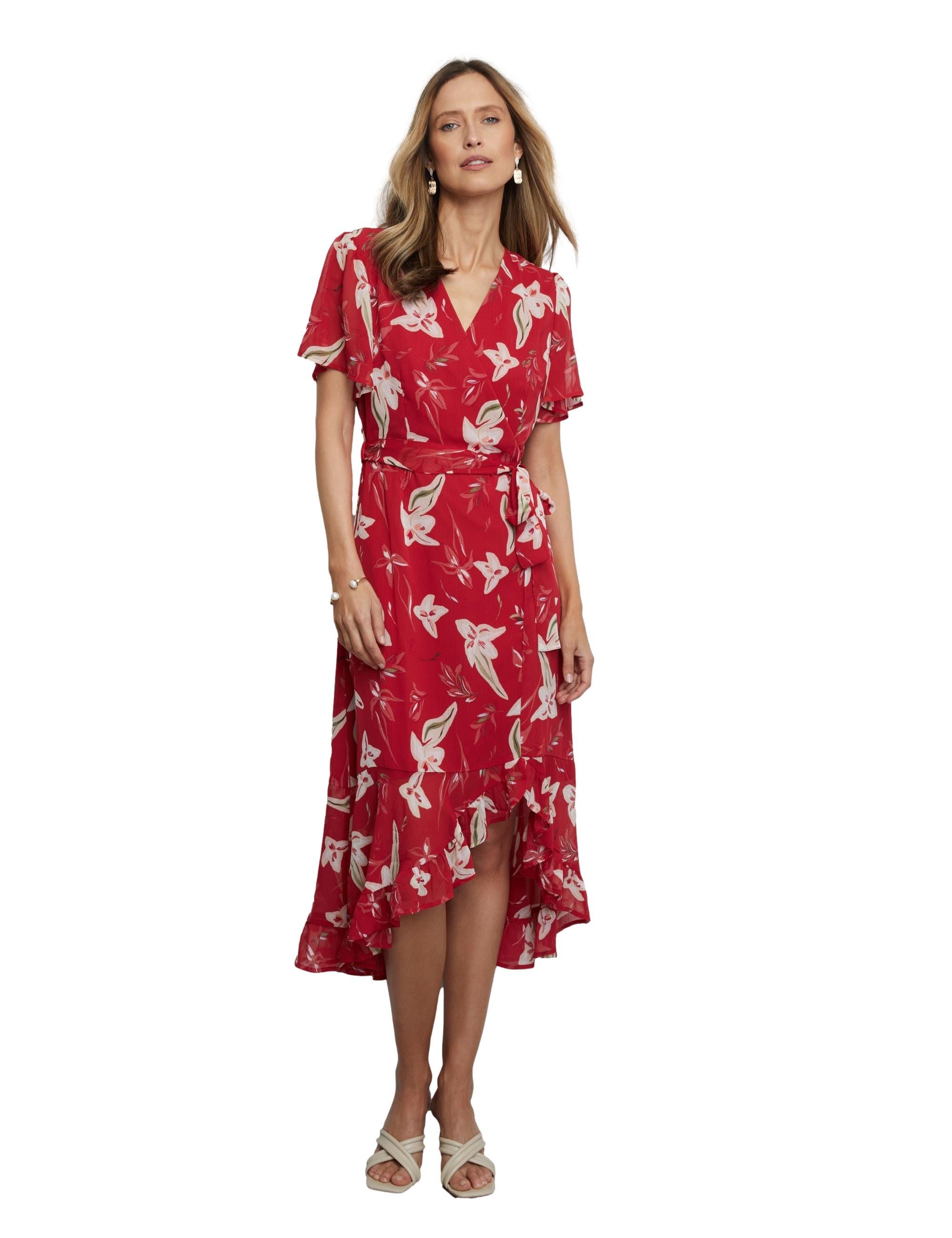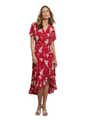 Liz Jordan Womens Dress - Regular Red Wrap - Summer - Relaxed Fit - Floral - Straight Sleeve - Knee Length