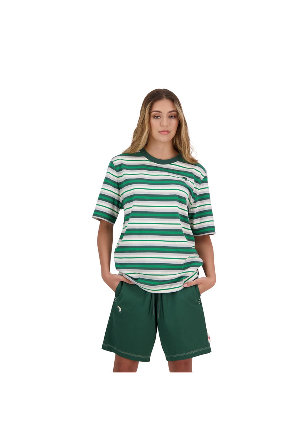 An Oversized Tee, Made From 100% Organic Cotton. Timeless Styles In Organic Cotton, Re-Worked For Today. Pair With The Heritage Knit Short To Complete Your Look. The Heritage Yarn Dye T-Shirt Is Part Of The Heritage Line By Canterbury Of New Zealand. Heritage. Pass It Down The Line. Oversized Fit Crew Neck Tee Yarn Dye Multi Colour Stripes Embroidered Kiwi Logo On Right Sleeve And Herringbone Side Seam Ccc Branding
