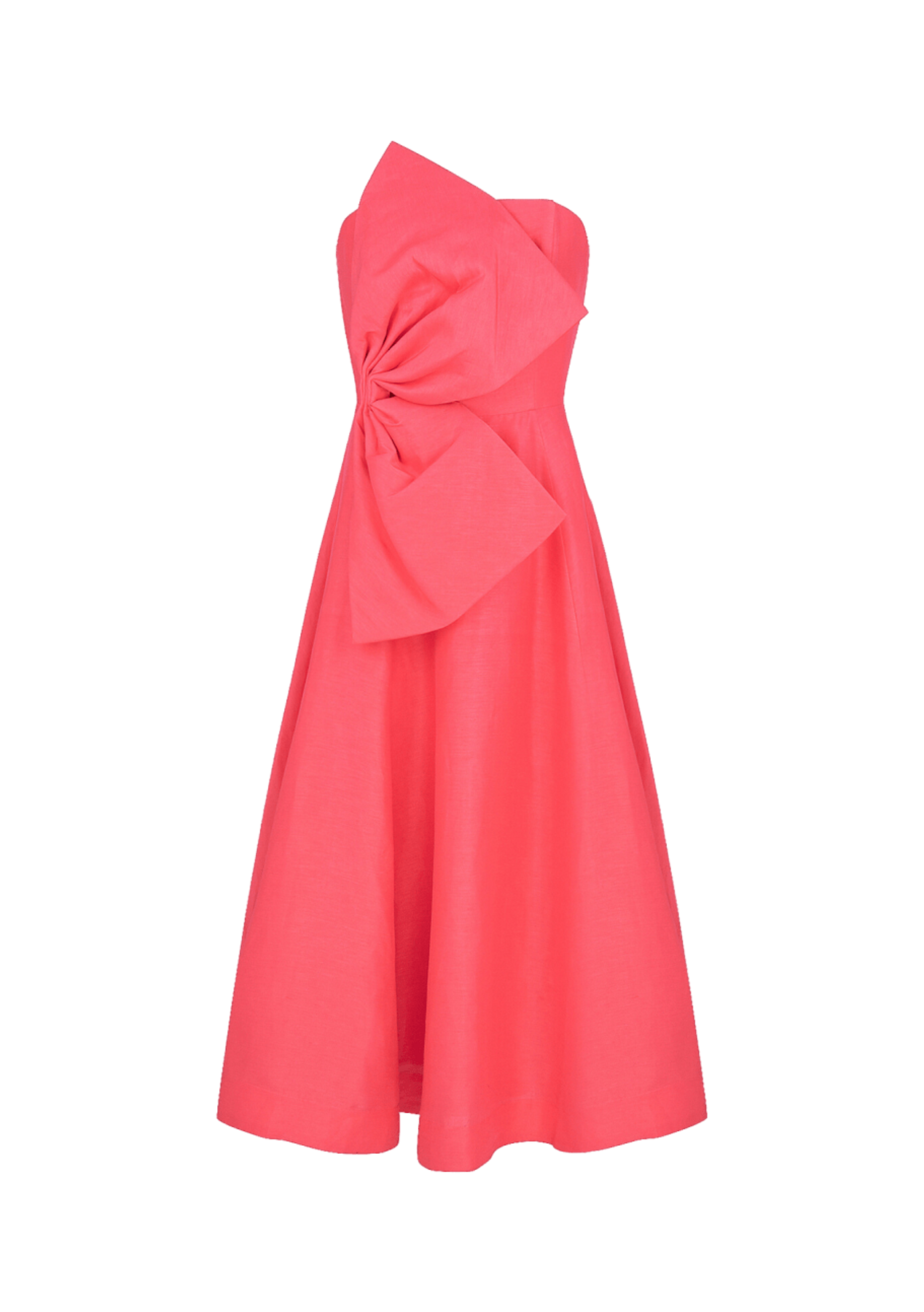 Camellia that offers a fresh and dreamy addition to your wardrobe perfect for weekend celebrations, birthday parties and beyond. Cut in our signature Silk Linen fabrication Camellia is a timeless investment piece that feels special and comfortable to wear all day long featuring fitted bustier with boning, flared skirt and beautiful bow detail. Garment Details Premium delicate silk linen fabrication 30% Silk 70% Linen. Exclusively designed La Maison Talulah prints artwork/colour Fit and flare bustier mini dress with bonded bow detail on the front Bust is fully lined with detailed boning throughout front and back for support and fit Fitted waist. Soft silky 98% Polyester 2% elastane fully lined dress Skirt has a fully flare full skirt Centre back invisible zip with hook and eye closure Fabric Wash & Care Gently cold hand wash turned inside out. Do not soak, only a light hand wash or spot clean recommended. Do not tumble dry. Line dry in shade Warm iron inside out very gently Dry cleanable Light steaming only Due to the delicate nature of this natural fabric, we recommend washing after numerous wears and only when needed to keep the longevity of the garment and delicate fabric. Designed in Australia Assembled in China Size & Fit The Camellia fits true to size for our Talulah mannequin body measurements for a firm fit, so we recommend you select your normal size, if you run in between, we recommend you size up. Our mannequin body measurements can be found on our size chart and below we provide detailed measurements below if you need to check lengths or proportions. This style is fitted through the bodice, has fixed waist and flare skirt.