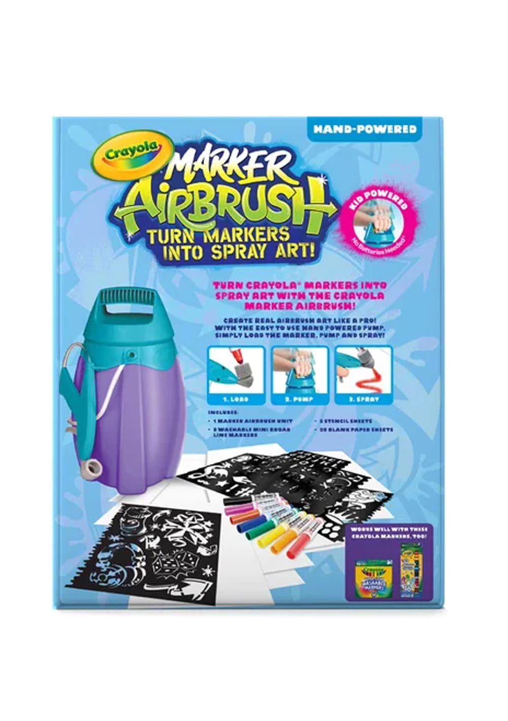 The hand pressurised airbrush machine uses Crayola's Broadline and Pip-Squeaks Markers to create a fine mist that's great for all kinds of art projects.
