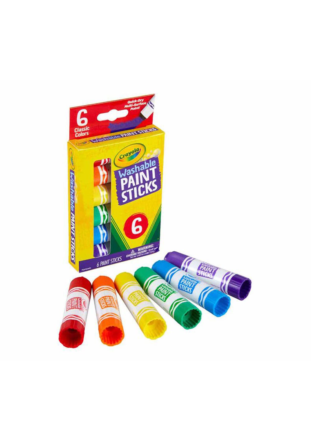 Crayola Washable Paint Sticks are the perfect less mess solution for paint, perfect for projects and crafts big and small! Paint Sticks allow you to have all the fun of paint without all the mess! No set up, clean up, or water is required and they easily wash clean from skin and most washable clothing. Crayola Washable Paint Sticks go on like a glue stick, but look just like paint. They offer full coverage and are designed to work on a variety of surfaces. This less mess kids' paint set includes 6 Washable Paint Sticks in assorted colors: Red, Yellow, Green, Blue, Purple and Orange. Ideal paint set for kids, ages 6 and up.