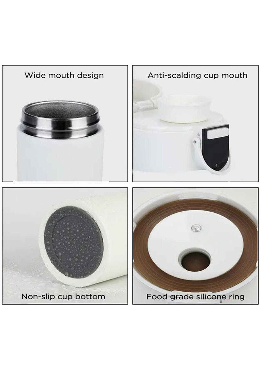 Product Description: The?Smart Water Bottle comes with an OLED intelligent temperature display?that lets?you know the temperature by lightly touching?it, so?you don t need to touch?it with?your lips that might?cause?you?burns. You can always know the temperature in the cup, safe,?and convenient.This stainless steel water bottle has double insulation, which can keep your drink at its optimal temperature, may it be warm or cold, allowing you to drink hot or cold water and coffee during travel or in your office.This water bottle is made of 304 stainless steel and PP plastic. It is guaranteed BPA-free, safe, healthy, tasteless, and corrosion-resistant. It has no metal smell, no rust, and gives no change in the taste of liquids (such as tea, coffee, juice, etc.)The insulated bottle is equipped with a durable built-in 90mAh rechargeable battery. It will take you 1 hour to fully charge the battery and it will give you up to 15 days of usage, saving you from the hassle of changing batteries every now and then, making it eco-friendly in the long run.?Product Specification:Color:?White, Black, PinkMaterial:?Stainless Steel 304Lid material: food-grade PP+PCSealing ring material: siliconeSize:?220 * 66mmWeight:?280gCapacity: 450mlFunctions:?ThermosUsage Time:?up to 15 days (depending on usage)Charging Time: 1 hourBattery Information:?90mAhRated voltage: DC5VRated power: 0.2WProtection Level: IPX4?Package Inclusion:1 * Smart Water Bottle1 * USB Charging Cable1 * User Manual