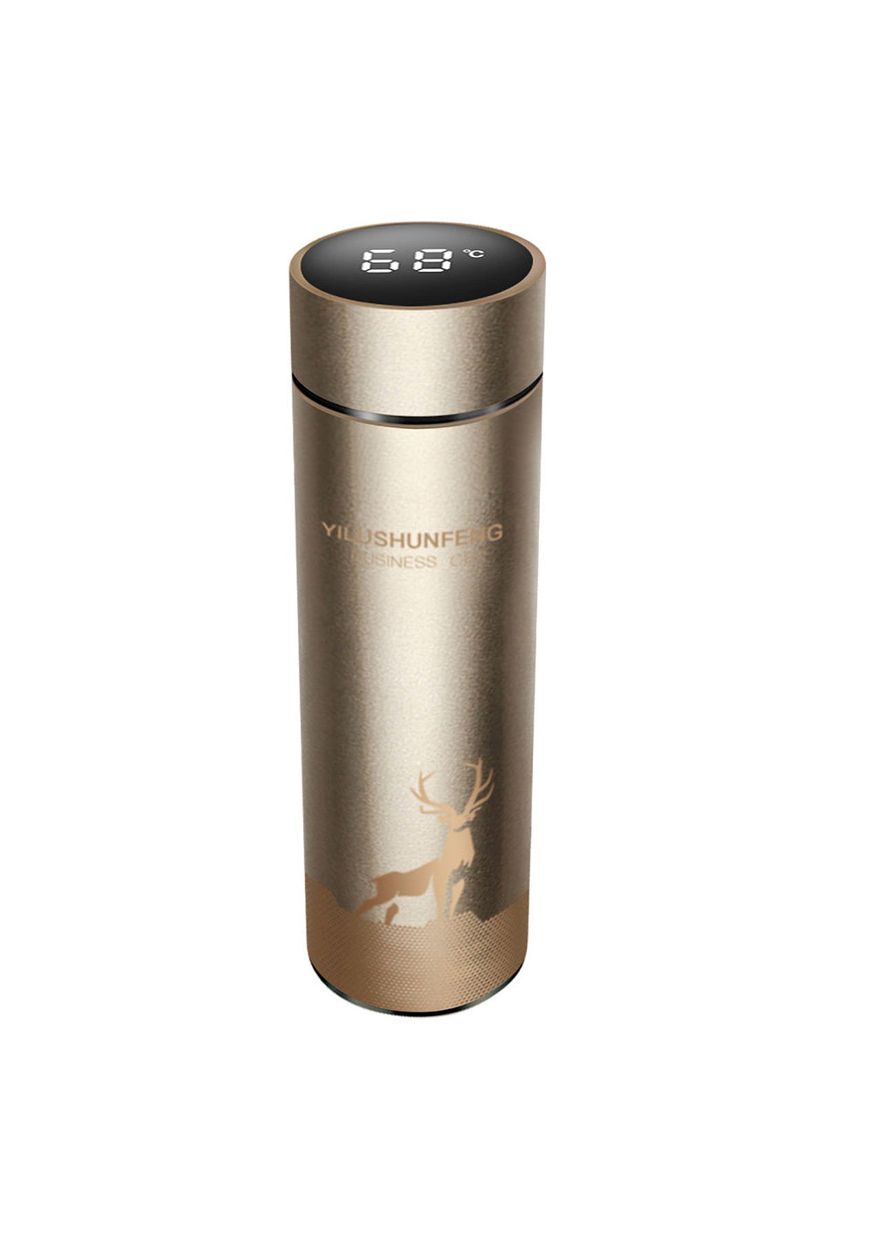 Insulated Hot Water Bottle Vacuum Thermos Flask with LCD Display - Gold