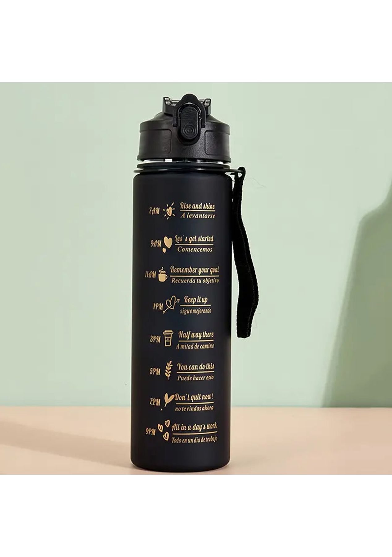 Product Description: The distinctive bottle with motivating words and a time marker, will serve as a reminder to stay hydrated, as well as to drink the amount of water your body needs throughout the day to avoid dehydration. Thanks to the translucent matte surface, you will always have a clear view of the filling level of the bottle.It is made of rigid plastic from environmentally friendly material and is equipped with a double protection safety snap comes equipped with a silicone seal that enhances its leak-proof effect, as well as designed with a hand strap that is extremely comfortable to carry anywhere.It is ideal for gym, hiking, running, traveling, schools, etc. A great companion for your daily activities thanks to the bottle being lightweight and the removable straw allows you to enjoy spill-proof sips or a quick flow of water.Product Specification: