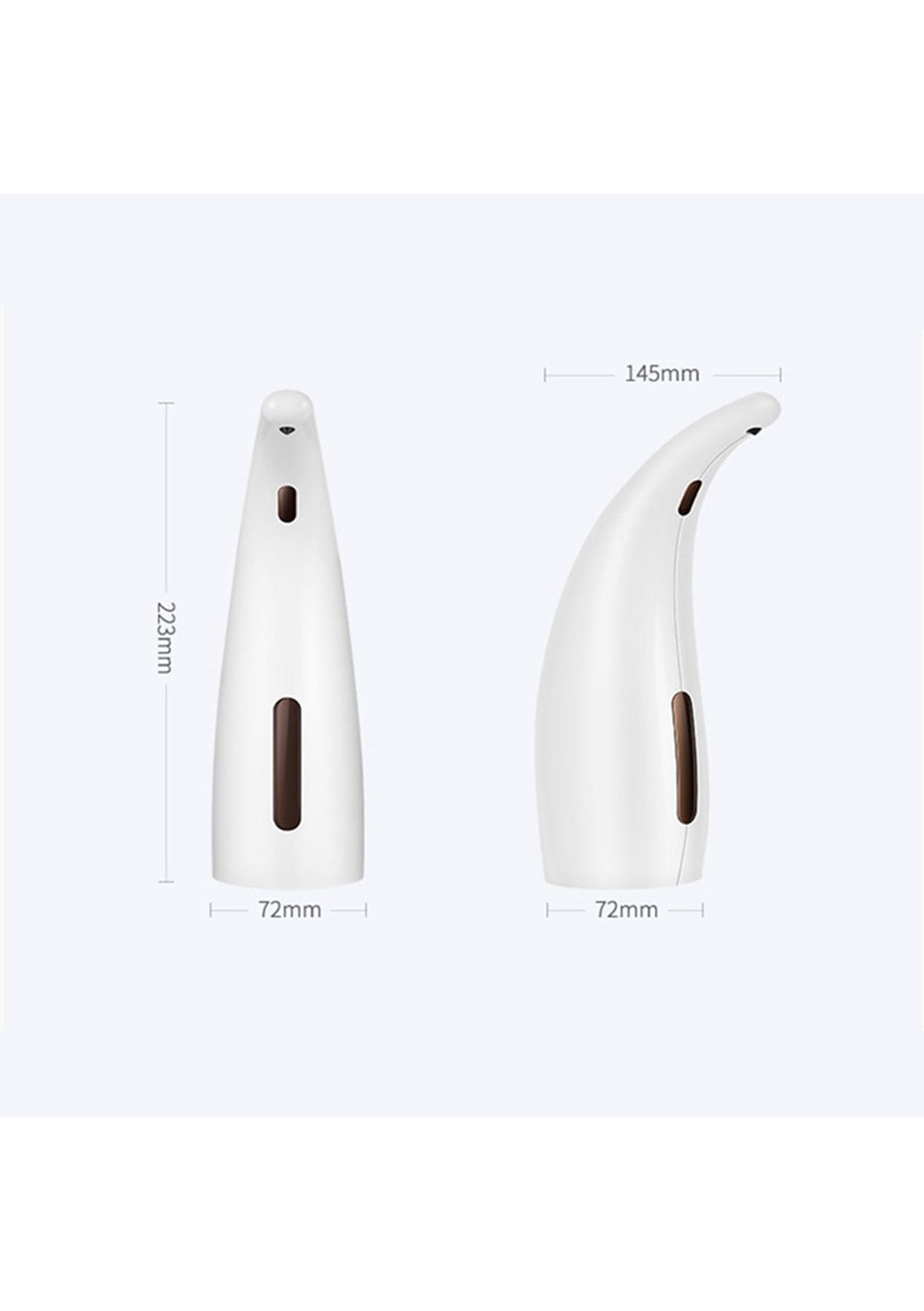 Product Description: The soap dispenser with a built-in sensor can automatically identify and discharge the soap. Soap liquid can be obtained quickly and efficiently without pressing the button with wet hands. 5cm/2in is the optimal sensing distance, put your hand on the liquid outlet, and then the soap dispenser will release 1ml of soap liquid each time, hold the posture for 2 seconds to dispense again;The main body of the soap dispenser is designed with a transparent window, which can easily show you the remaining amount of soap in real-time, avoiding the problem of insufficient soap;The soap dispenser is powered by 4*AAA batteries, not limited by the power cord, and can be conveniently placed anywhere you like;The soap is made of high-quality ABS material, which is durable and has a long service life. Its shape is stylish and beautiful, which will add more colors to your home life;It comes with an IPX6 waterproof function that can effectively prevent splashing water into the internal electrical components, which is very suitable for bathroom use;?Product Specification:Color: Dark Wood, Light Wood, Pink, Silver, WhiteMaterial: ABSSize: 97 x 72 x 249 mmCapacity: 300mlProtection Level: IPX6Battery Information: 4 x AAA battery (not included)?Package Inclusion: 1 x Soap Dispenser