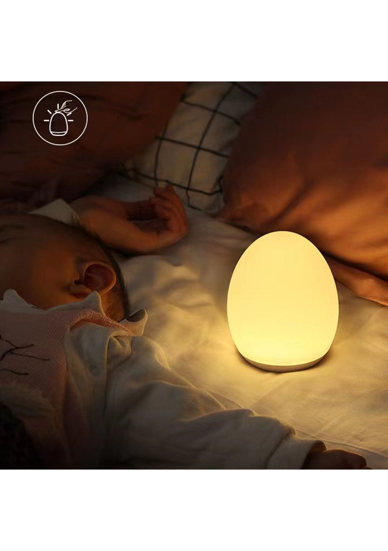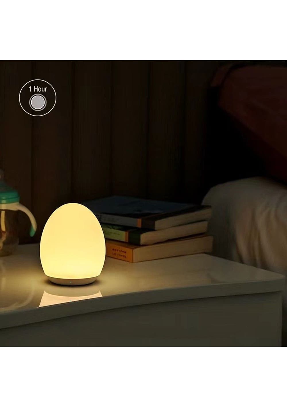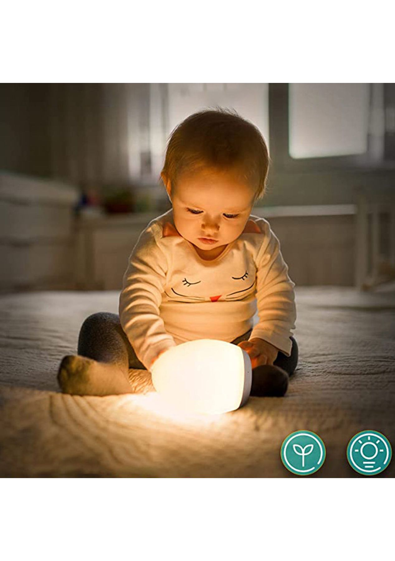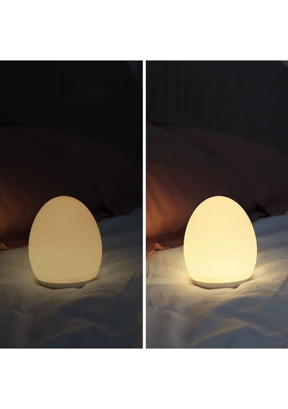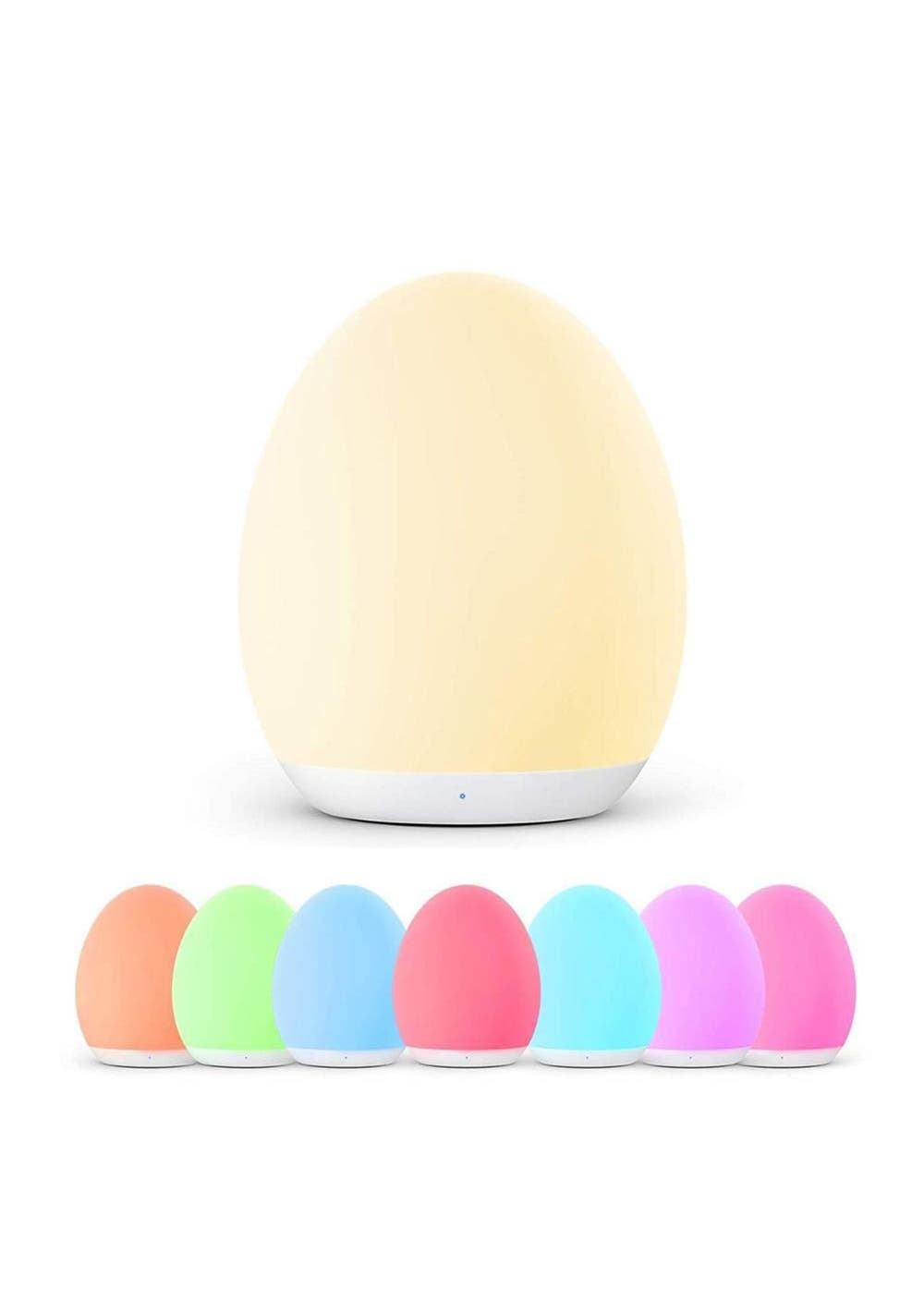 Product Description: This night light supports RGB mode, where it will automatically cycle through 8 velvet colors; touch top 0. Fix your favorite color in 5 seconds. The memory function helps you keep the last setting.This night light is 100% safe for your baby to learn and play thanks to toy-grade ABS, PC, and silica gel materials; the anti-blue light LED won t flicker or hurt the eyes of your child.Long press the top for stepless dimming; tap the top twice to turn the light on/off; press and hold the top for 1.5s to enter night light mode for late-night feedings and diaper changes.It offers a stable way to charge and prevents toppling over mode; connect directly to the micro-USB cable for powering out of the house.?Product Specification:Color: WhiteMaterial: Silica GelSize: 92 x 110 mmWeight: 230gFunction: Night LightUsage Time: up to 100 hoursCharging Time: 3 hoursBattery Information: 1800mAh?Package Inclusion:1 x Night Light1 x USB Cable? ?