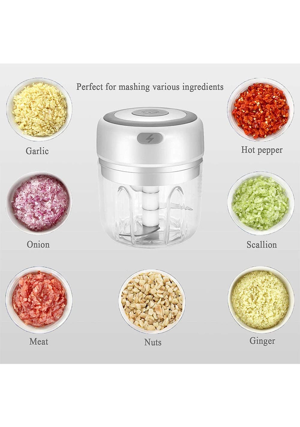 ?Product Description: This fast electric food chopper will help you cut garlic, carrots, vegetables, and nuts. This electric mincer not only cuts ginger and pepper, it can also be used as a mincer and grinder for mincing boneless meats and cottage cheese.This mini food processor is made with high-quality food-grade non-toxic plastic material. It has a sharp stainless-steel blade making it quick to chop and mince. The bowl is BPA-free and safe to hold food. You can make food for your children, and family without taking a lot of time in preparing.This processor works by pressing the button on top and it will start mincing the ingredients. It has a capacity of 250mL and can be charged via the USB cable that is included in the package. This mincer is compact and easy to store. The mini automatic food chopper has the advantages of simple structure, economy, practicality, compact volume, and convenience. The mini garlic cutter is good for small kitchens, camping, travel, and caravans.The bowl and blades can be separated, so the food processor is convenient to be washed. You easily clean this by hand with the use of mild dishwashing soap and water.The bowl is designed with a non-slip silicone base. Quick and easy way to cut, mix and mix food. To avoid injury during cleaning, do not touch the blades with your fingers.?Product Specification:Color: White, Green, PinkMaterial: PC, PPSize: 9.5x9.5x11.5cmCapacity: 250mLWeight: 300gFunctions: Mini Food ProcessorUsage Time: 30 days (depending on usage)Charging Time: 3 hoursBattery Information: ?USB Charging,Voltage: 3.7V Rated voltage: 5VPower: 30WBlade: 304 stainless steel?Package Inclusion:1 * Kitchen Chopper1 * USB Charging Cable 1 * User Manual