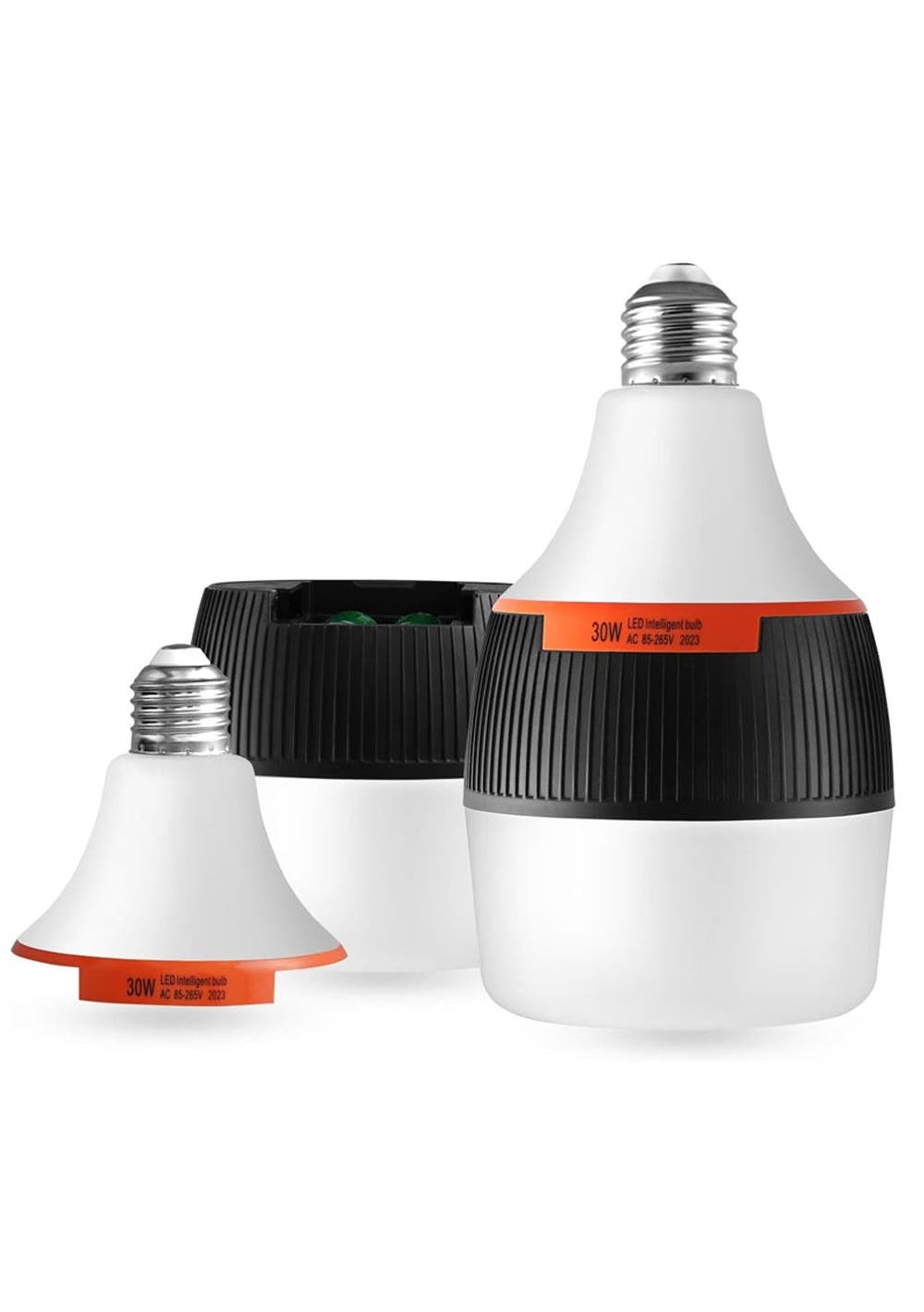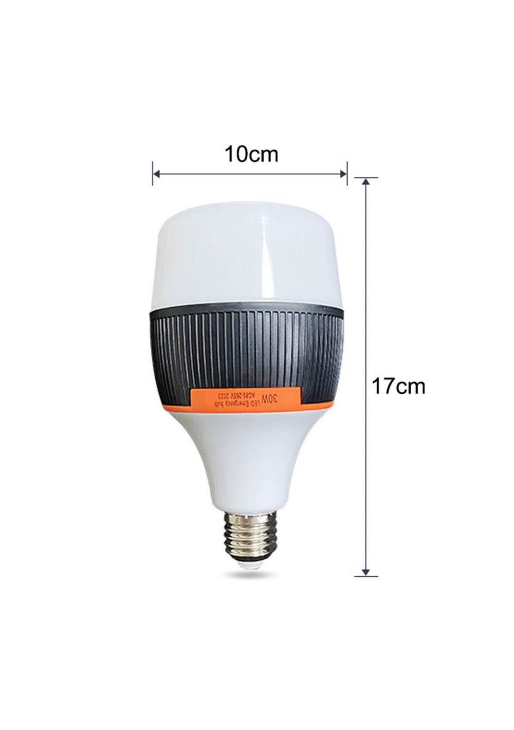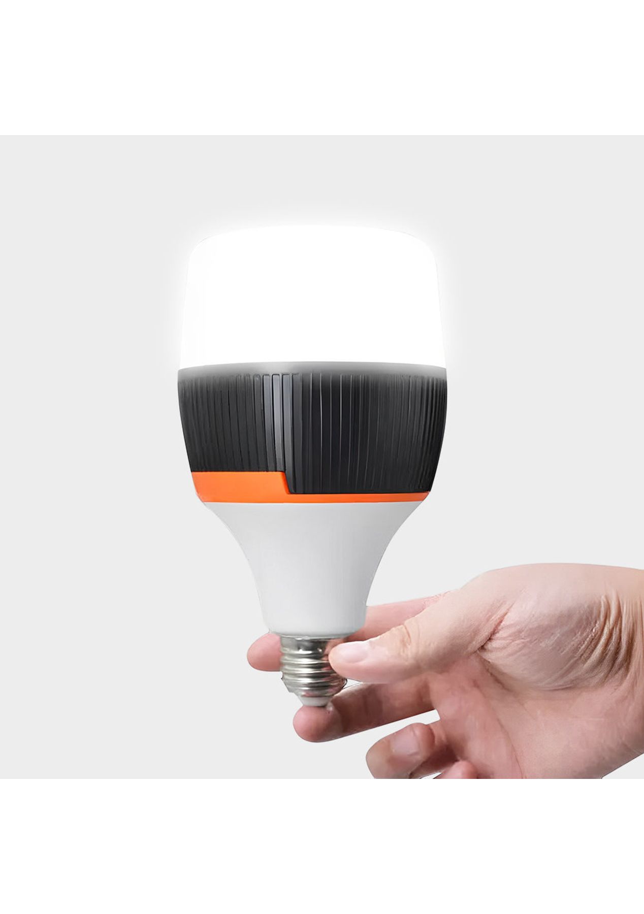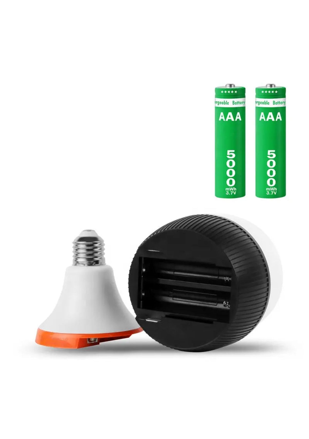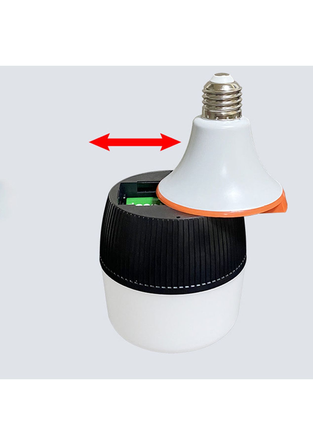 Product Description: This rechargeable bulb adopts an independent removable battery compartment design, which not only facilitates the replacement of batteries but also effectively saves the cost of changing lights due to battery depletion.This LED rechargeable bulb works just like a regular LED bulb and can recharge itself for daily use. Each emergency bulb has a built-in 1200mAh*2 battery backup, which can provide 3-6 hours of lighting during a power outage.It can be used in multiple ways: Use it daily as a regular light bulb, use it with the portable, use it as a portable flashlight during power outages, and if the portable power supply cover is lost, you can also touch the metal parts at the bottom of the light directly with your finger to light it up.This emergency light is useful in case of power outages, storms, hurricanes, etc. Say goodbye to unsafe emergency candles. You can replace your current light bulb in any room, garage, basement, hallway, barn, etc.Product Specification:Color: Black and OrangeMaterial: PP, Aluminum AlloySize: 100 x 170 mmWeight: 200gFunction: Emergency Light BulbUsage Time: 3-5 hoursBattery Information: 2 x 1200mAhLamp Holder: E27Package Inclusion:1 x Emergency Lamp1 x USB charging Cable