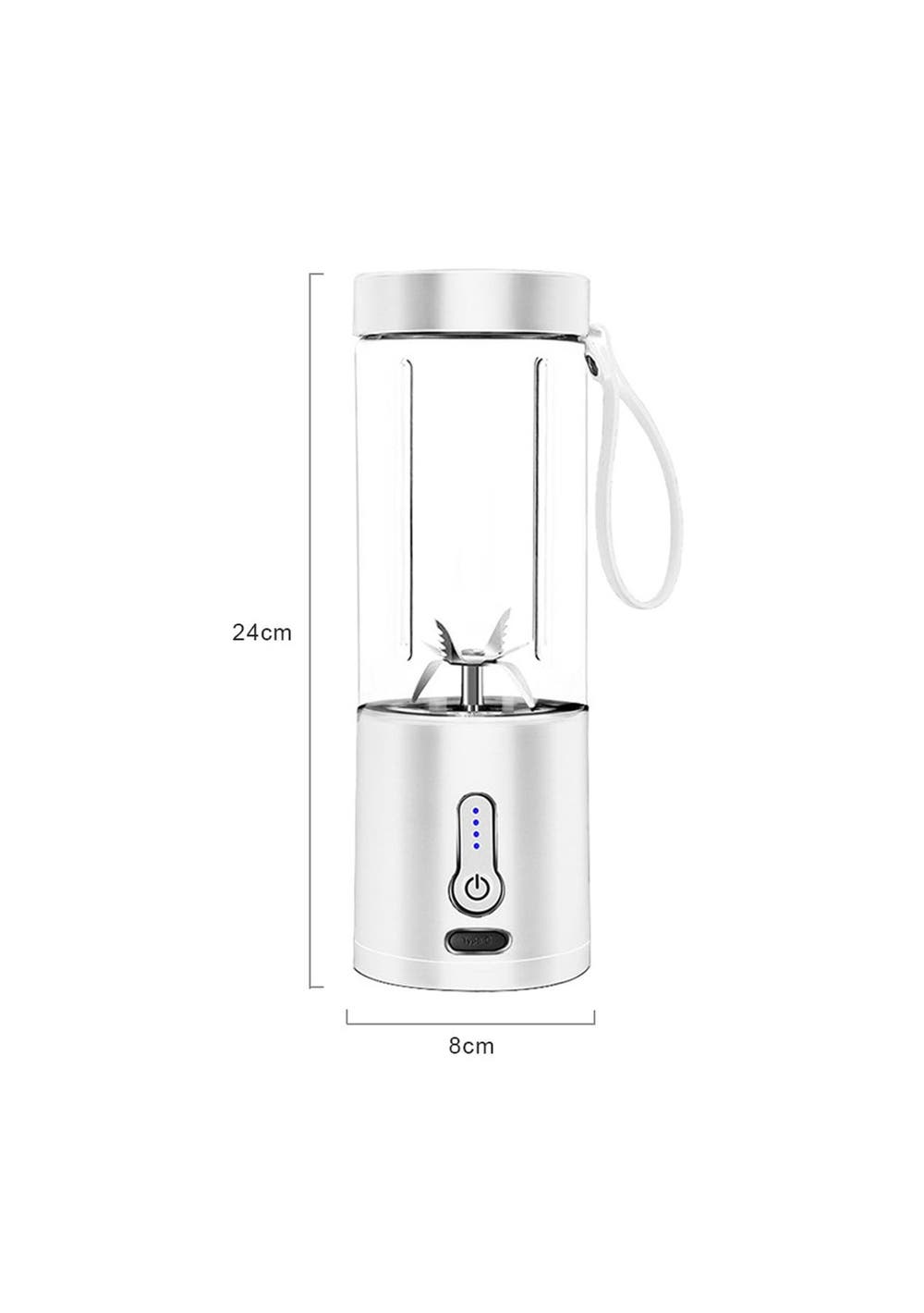 Product Description: Create healthy fruit juices and smoothies on the go with this powerful Portable Handheld Blender and Juicer. This machine can perfectly make you your own healthy drink in just a matter of seconds after loading it with your prepared ingredients.The portable blender cup is made with ABS material. All parts are BPA-free, baby food-grade. It is compatible with any device with a USB power port. You can plug it into your car adapter, AC adapter or power bank, etc.The juicer cup is equipped with 6 PCS 304 stainless steel blades and a 7.4V motor. higher level of rotation frequency achieves 18,000RPM, it only takes 30 seconds to bring you a cup of fresh smoothie, shakes, fresh juices, masks, etc.The blender s blade is made out of stainless material that is guaranteed sharp and helps stir and cut the ingredients swiftly. We do not recommend washing the blender using a dishwasher as it can damage the blender.?Product Specification:Color: Black, WhiteMax. power: 150WMotor: 540/7.4V, 18000 rpm¡À15%Power supply: Lithium battery USB 5VCharging Time: 3-4 hoursUsage Time: up to 15-25 cyclesBattery volume: 2000mAh*2Blade material: 304 Stainless Steel, 6 Blades in 3DTemperature: Below 60¡æ/140¨HCup material: ABS (BPA free)Cup Capacity: 530mlCup size&Capacity: 8*24cm/16.9oz?Package Inclusion:1 * Portable Blender1 * Type-C Cable1 * User Manual