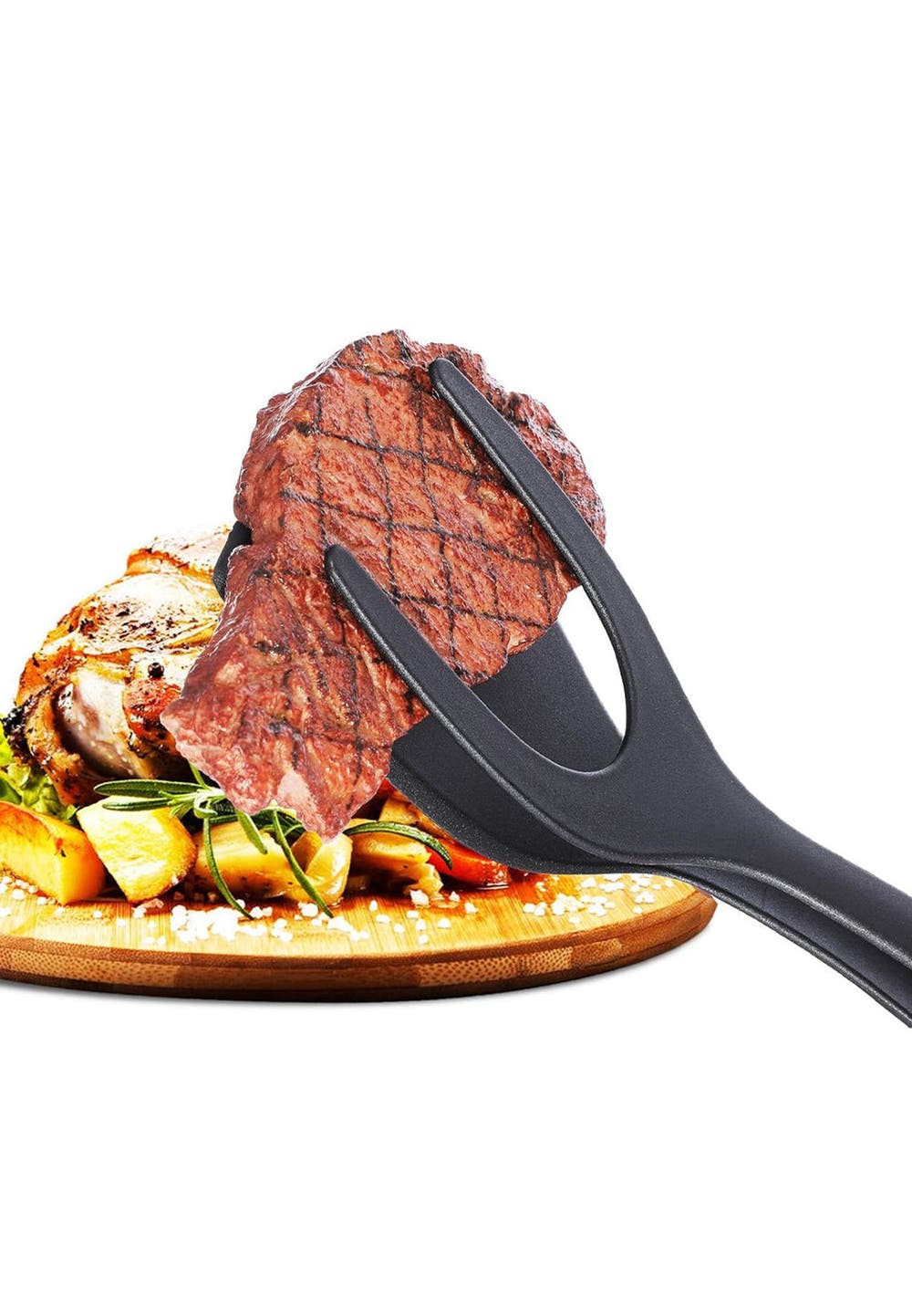 Product Description: A kitchen tongs, which easy to handle the grab, flip & scrap, no more switch between several cooking utensils, one hand easy.Its 2-in-1 design combine a spatula and a tong. This combination allows you to easily grip and flip your food with a single tool, making your cooking experience more enjoyable and convenient.The spatula is made of nontoxic and safe material nylon. This material is known for its high temperature resistance, ensuring that it can withstand the heat of cooking without melting or releasing harmful substances.The handle is fully covered by frosted silicone, anti-hot, non-slip, easy to clip. Housewives, barbecue lovers and chefs will love it.With a length of 12 inches, the spatula is a reasonable size for dining and cooking needs. The 3-inch width of the tong provides enough space to handle a variety of foods, making it suitable for flipping and turning them during cooking.Slotted clamp drains excess grease back into the pan to make food more healthy. It can be a good turner spatula and strong enough to grip, turn, grill the fish, beefsteak, burgers, eggs, filets, and meat pancake and more.Warm tip: Please don't put the silicone kitchen tongs on open flames.?Product Specification:Color: Black, Grey, RedMaterial: Silica GelWeight: 130gSize: 30.7 x 7.9 cmFunction: 2-in-1 Grip and Flip Spatula Tongs?Package Inclusion:1 x Spatula Tongs