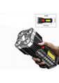 Product Description: The high-lumen flashlight comes with an output of up to 60,000 lumens, large-area irradiation, an irradiation distance of up to 1000m, and service life of up to 120,000 hours. Rechargeable flashlights are about 20 times brighter than ordinary incandescent lampsThe light has an IPX4 rating making it waterproof and shockproof. This tactical flashlight uses high-quality ABS, has excellent heat dissipation performance, and has functions such as waterproof and impact resistance. LED flashlight with high lumens is very suitable for use in rain, snow, or other emergency situationsThe torch light is equipped with built-in batteries (1200mAh) that can work for 12-24 hours. It comes with a built-in current protection module that allows you to safely use it as a mobile power source to charge your phone.?Product Specification:Color: Gold, SilverMaterial: ABSSize: 64 x 141 mmWeight: 150gFunction: Torch LightBattery Information: 1200mAh?Package Inclusion:1 x Torch Light 1 x USB Cable?