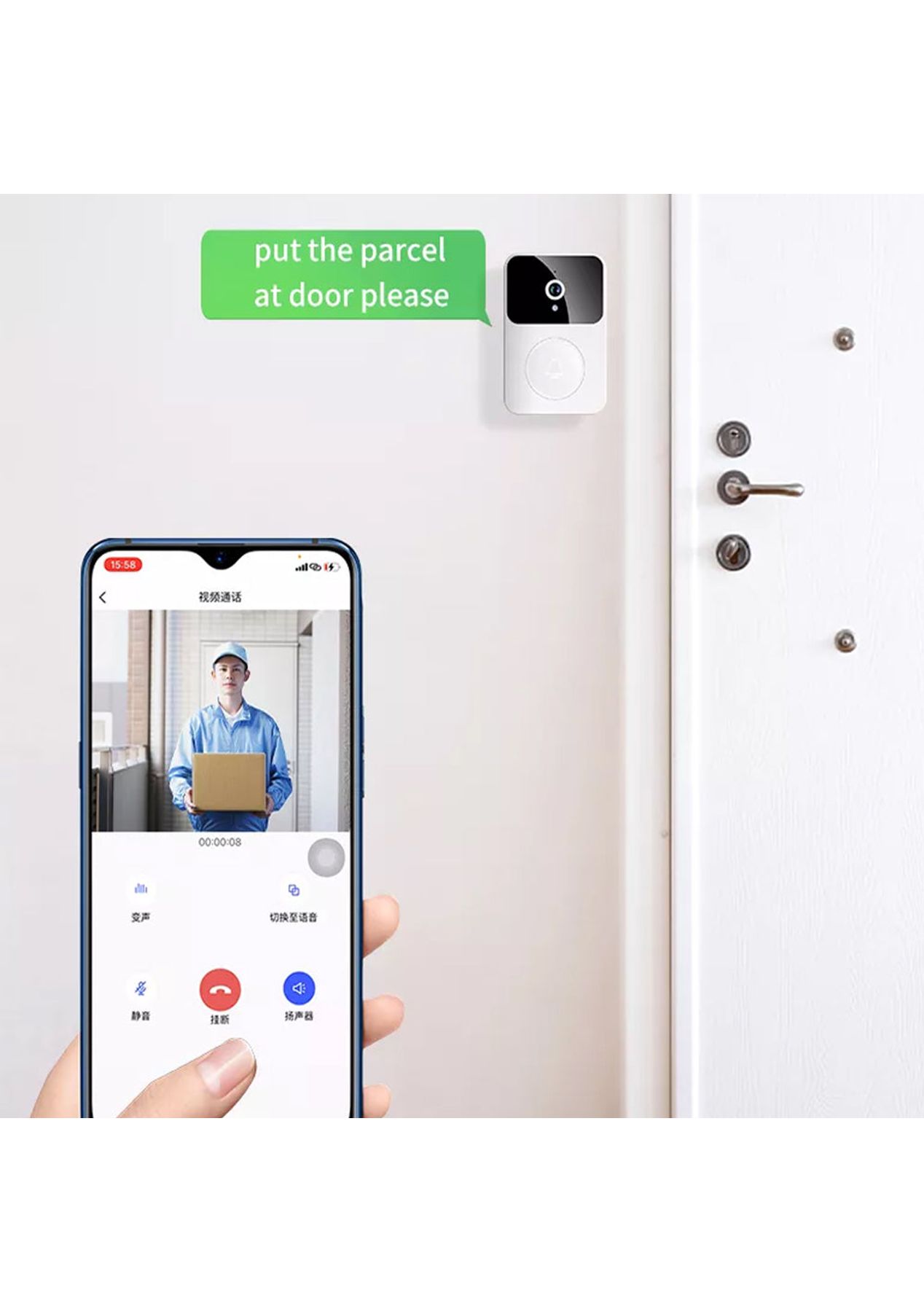 Product Description: The doorbell camera provides you with real-time clear two-way audio, you can instantly see, listen and talk to your visitors through the mobile app. When a visitor presses the doorbell, a notification will be sent to your mobile phone, and you can answer and enter the video call interface, up to 10 family members.Wireless doorbell cameras can also set free ringtones in any room in your home in case your phone isn't with you.It also comes with a voice-changing function, the voice of men in the family, children, and women will become safer when used alone. Images are automatically captured and saved to the cloud, and you can view access records in the app. Wi-Fi connection (2.4GHz only), does not support a 5G connection.It comes with a built-in 800mAh Li-ion long standby rechargeable battery with a high capacity battery, the normal use of more than 6 months, and charging time is 1.5 hours. The security camera installation and connection are 100% wireless without having to deal with any sockets or tangled wires for your convenience.This video doorbell camera provides you with a clear image and video recording. The built-in infrared light allows you to see clearly even in the dark. Smart IR-CUT automatically senses ambient light and switches to night vision mode. The 65 wide angle can also see angles that cannot be seen. Better protect your family and property!This wireless doorbell camera can be set up without any complicated tools, it only takes 5 minutes. The doorbell can be controlled by APP, automatic working mode, intelligent and portable. ?Product Specification:Color: WhiteMaterial: ABSSize: 3.15 x 2.08 x 0.86 cmWeight: 300gFunction: DoorbellUsage Time: 6 monthsCharging Time: 1.5-2 hoursBattery Information: 600mAh?Package Inclusion:1 x Video Doorbell 1 x USB Cable?