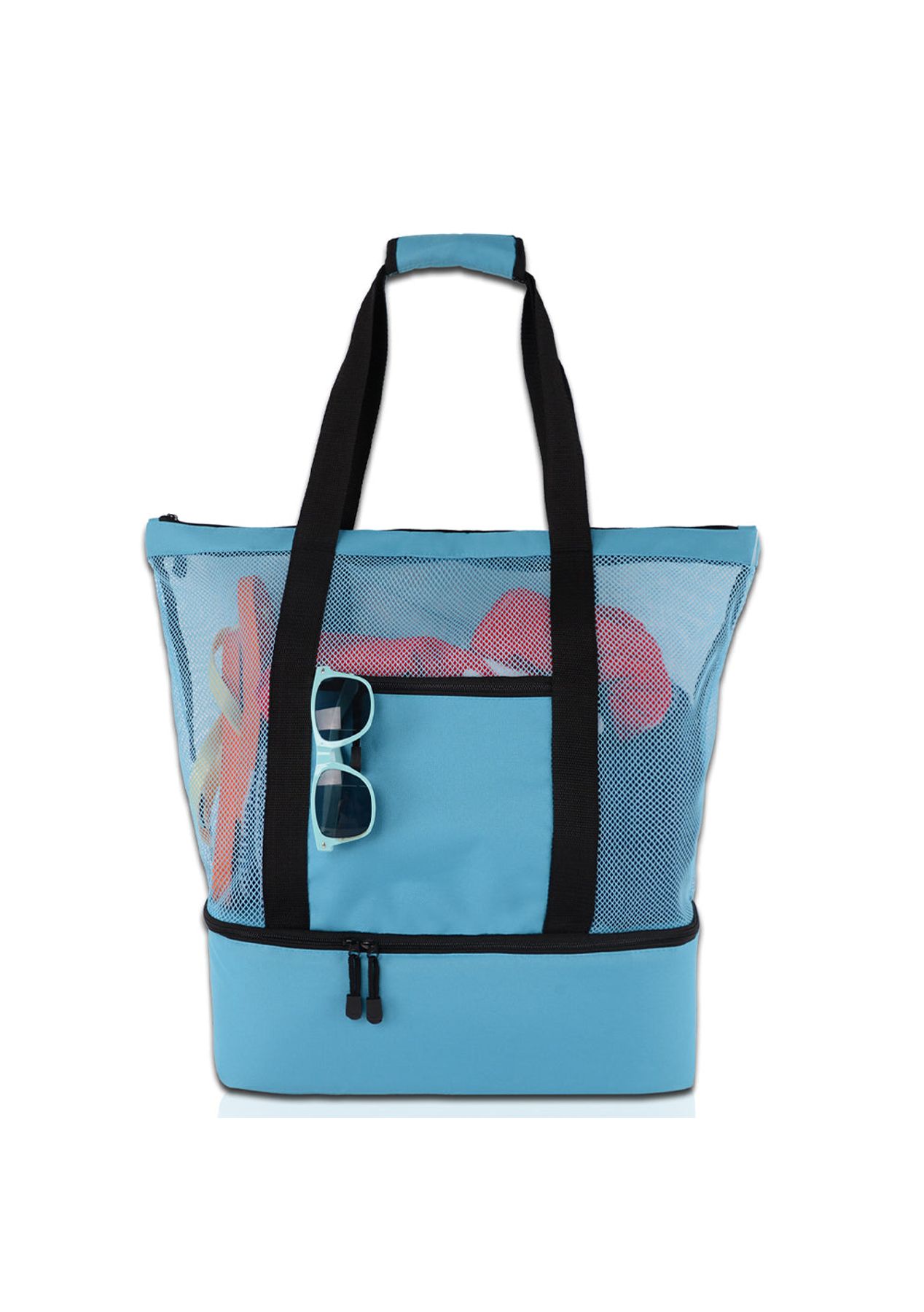 2 IN 1Mesh Beach Tote Bag with Insulated Cooler - Blue