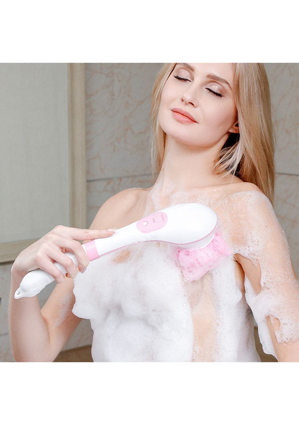 Product Description: Make your bath time fun time with this Portable Shower Brush. The brush is equipped with a long handle, making it easy to wash your back and other hard-to-reach areas such as your nape, legs, and feet. It has a rechargeable interface and is equipped with IPX7 waterproof protection. You can completely use it while wet and together with your favorite bath products.The shower brush is easy to install. You can replace any head to suit your needs. When replacing the brush head, hold the body with one hand, hold the brush head with the other hand, and pull it out firmly. When installing the brush head, put the brush head in and press until it makes a sound, then it starts to work. Be careful when handling the massager to avoid falling off. After showering, keep the brush clean and dry.?Product Specification:Color: Blue, PinkMaterial: ABS, Silicone, MotorSize: 8 x 36 x 4 cmWeight: 550gFunction: Shower Brush MassagerCharging time: about 1.5-3 hoursUse time: 45minBattery Information: Product speed: 10000rpmWaterproof Rating: IPX7?Package Inclusion:1 x Brush Handle5 x Replaceable Heads 1 x USB Cable?
