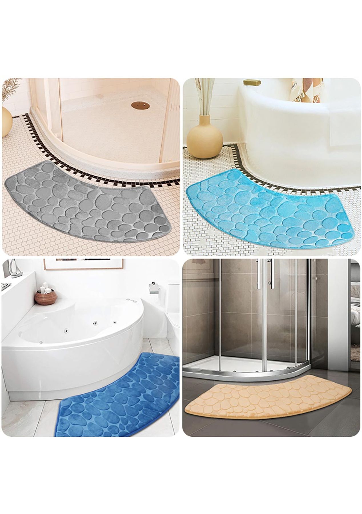 Product Description: This mat features soft and firm material with fast water absorption, ensuring a clean and safe living room, bathroom, or kitchen floor without water marks.With a soft touch and fine texture, this mat is environmentally friendly and comfortable. Its lock thread hemming provides stability, preventing shedding and ensuring a long service life.The non-slip bottom prevents sliding or rolling up, ensuring safety for your family and children. It won't damage the floor and is stain-resistant and durable.This mat is machine washable or hand washable, saving time and energy in maintenance. Even after washing, it remains fluffy and retains its shape without peeling or deforming.Featuring a round shape with an innovative arc design, this shower mat adds elegance to any corner or bathroom space, making it a perfect accessory and decoration.?Product Specification:Material: Polyester Fiber Color: Grey, Beige, Coffee, Sky Blue, Royal BlueSize: 100 x 60 x 30cmThickness: 1.2cmWeight: 170gFunction: Bath Mat?Package Inclusion:1 x Mat