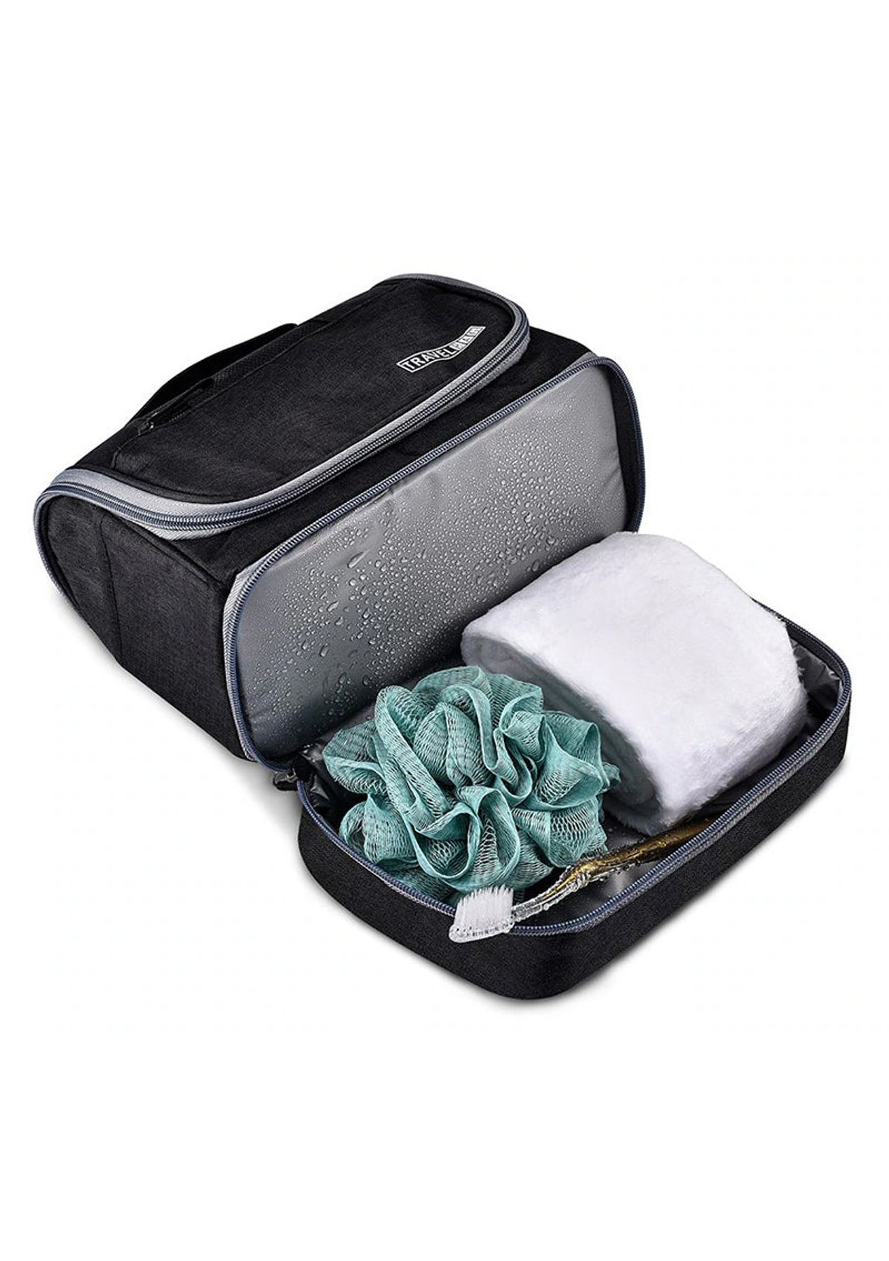 Product Description: If you travel a lot, this toiletry bag can keep your items in order, such as cosmetics, makeup, shaving kit, shampoo, combs, personal hygiene items, small to medium accessories, etc.The cosmetic bag is made of waterproof Oxford cloth and the interior is made of high-density waterproof fabric, safe, and practical. It comes with a comfortable handle, a portable hook, and a stylish double zipper with superior capacity.This toiletry bag has a 2-layer design that separates dry and wet items from each other. The top compartment of the bag can be filled with all your dry items (clothes, toiletries, etc.), while the bottom layer, slightly smaller, covers all wet items such as towels, swimsuits, etc.It has a built-in heavy-duty hanging hook and top carry handle, easy to hang on the bathroom door, shower rod, or towel rack, or stand up by itself on the counter, and can also ?be folded thinly to save space when not used.??Product Specification:Color: Black, Blue, Gray, Navy, Purple, WineMaterial: Oxford ClothSize: 25 x 13 x 21 cmWeight: 420gFunction: Toiletry Bag??Package Inclusion: 1 x Toiletry Bag
