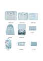 Product Description: Separate underwear, laundry, cosmetics in isolated cubes to keep them private, easily sorted and found with minimal effort.Incredible capacity that can accommodate luggage of a suitcase from 20 inches to 28 inches with various cube sizes applied.Neat netting on 3 large clothes bags provides visibility on luggage types while maintaining breathable.Strong material withstands tear against wrinkles and maintains solid shape. Waterproof material makes it easy to clean up and get dry in short. Worry free from cleaning and always prepared for your trip.Featuring durable zippers that hold the bags together with firm stitches neatly aligned. Made with water resistant material, and breathable lightweight mesh texture and foldable design, these cubes are a PRO at every detail. Get packed and go is a fun plus.Product Specification:Material: PolyesterColor: Navy Blue, Gray, Beige, BlueSize:Large mesh bag: 40*30*12cmMedium mesh bag: 30*28*12cmSmall mesh bag: 30*20*12cmMakeup bag: 26*15*9cmBra bag: 28*20*10cmDraw pocket: 34*24cmData pocket: 21*15cmShoe bag: 36*21cmPocket: 27*12cmPackage Inclusion:1 x 9 PCs Storage Bags