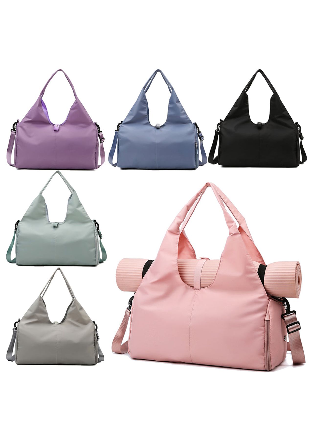 Product Description: The foldable travel bag luggage bag is made of high-quality, high-density oxford fabric, which is wear-resistant and waterproof.Designed for those who want to pack a Pilates mat and other essentials on the way to the gym. Equipped with adjustable elastic straps on the outside, it fits all sizes of yoga mats and holds securely.Large enough. The spacious main compartment allows you to easily store your fitness equipment, clothes, towels and anything else you want to take with you. This large capacity sports bag can hold clothes, books, toiletries, cosmetics, electronics and more for your travel needs.This yoga bag has a spacious main compartment and a wet compartment with zip to separate your dry cleaning items from toiletries as well as wet and dirty clothes.The independent shoe compartment is located on the side of the foldable sports bag. Store your shoes and prevent your other items from getting dirty.Perfectly designed sports bag for men and women is suitable for all scenarios. It can be used as a sports bag, swimming bag, travel bag, camping bag, hospital bag and more! No matter where you take it, this lightweight bag will make your life easier and more enjoyable!?Product Specification:Material: Oxford cloth + polyesterColor: pink, green, blue, purple, gray, blackSize: 49 x 25 x 21 cmWeight: 470gFunction: Yoga Mat Fitness Bag?Package Inclusion:1 x Bag