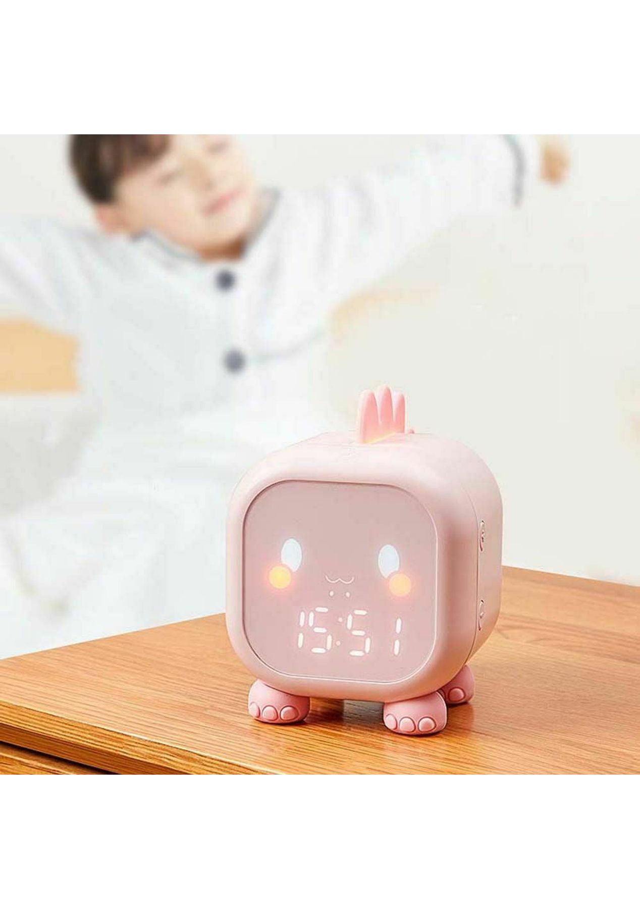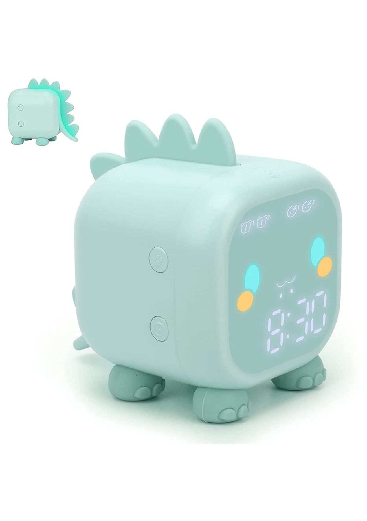 Product Description: Sleep Training Clock: The cute dinosaur design alarm clock uses environmentally friendly and safe silicone material, which feels soft and comfortable. The alarm clock with soft and colorful lights is an essential option to train children to develop good sleep habits.Talking alarm clock: The dinosaur alarm clock has a report time function. Select B00 to turn off the report time function, select B01 will report the time all day, and select B02 will report the time during the day (6 to 8 pm).Sensor Smart Watch: Before going to bed, you can set a 30 minute / 60-minute sleep mode. When you want the screen to turn on, you can wake up the screen by making a sound louder than 56 dB (clapping your hands) or by touching the watch. When the watch detects sound, the screen will automatically light up and turn off after 15 seconds.Multifunctional Design: The cute dinosaur alarm clock not only has soft colored lights but also has a snooze function that can be activated by pressing the top button when alarms sound. At the same time, it also has a thermometer and date display function. The dinosaur alarm clock uses a rechargeable lithium-ion battery, which is more environmentally friendly and energy-saving.?Product Specification:Color:?Blue, Pink, GreenMaterial:?ABS, PC, SiliconSize:?8.8*11.7*11.5cmWeight:?230gFunctions:?Alarm ClockUsage Time: 10-15 days (depends on usage)Charging Time: 6 hoursBattery Information: 1000mAhRated Voltage: DC5VRated Power: 1.25W?Package Inclusion:1 * Dinosaur Alarm Clock1 * USB Cable1 * User Manual ?