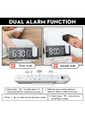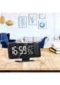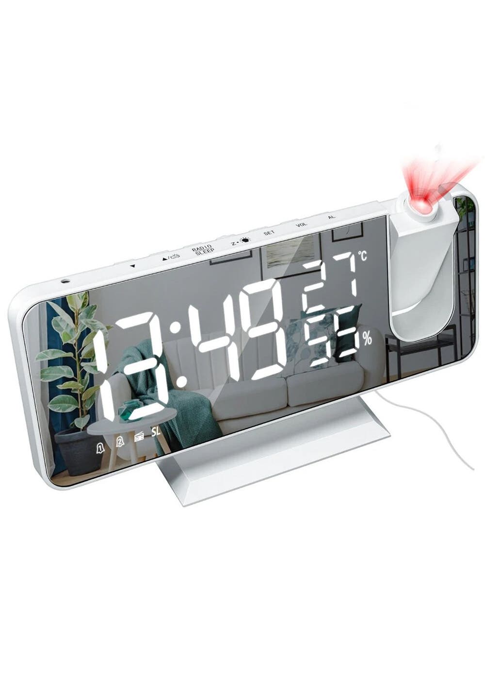 Product Description: This digital projection clock offers ultra-clear views of the time on your ceiling/wall with an enhanced adjustable 180 rotating projector, rotating the focus ring at the appropriate distance of 5m, making it easy to catch the time while you are in your bed without touching anything.This digital alarm clock is more than an alarm clock, but also an FM radio, it can store, scan, and lock your favorite radio station from 76.0 to 108.0 MHz, meeting the different radio standards of different countries. This digital alarm clock can be set two separate alarms for couples with different routines or a backup to wake up heavy sleepers. The alarm lasts for about 2 minutes and pressing the snooze button will give you another 5 minutes of sleep time. The brightness of the time display can be adjusted for 4 levels which can not only save power but also emit soft light for sleeping.The clock has a temperature display, with a temperature measurement range: 0¬°√¶~50¬°√¶ Error: plus, or minus 1¬°√¶ as well as a humidity display, with a humidity measurement range: 20%~95% error: plus, or minus 5%?Product Specification:Color: Black and Blue, Black and White, White and WhiteMaterial: ABSSize: 185*45*91mmWeight: 250gFunctions: LED Alarm ClockPower Supply: USB Cable Plugged-in?Package Inclusion:1 * LED Alarm Clock1 * Power Cable 1 * User Manual