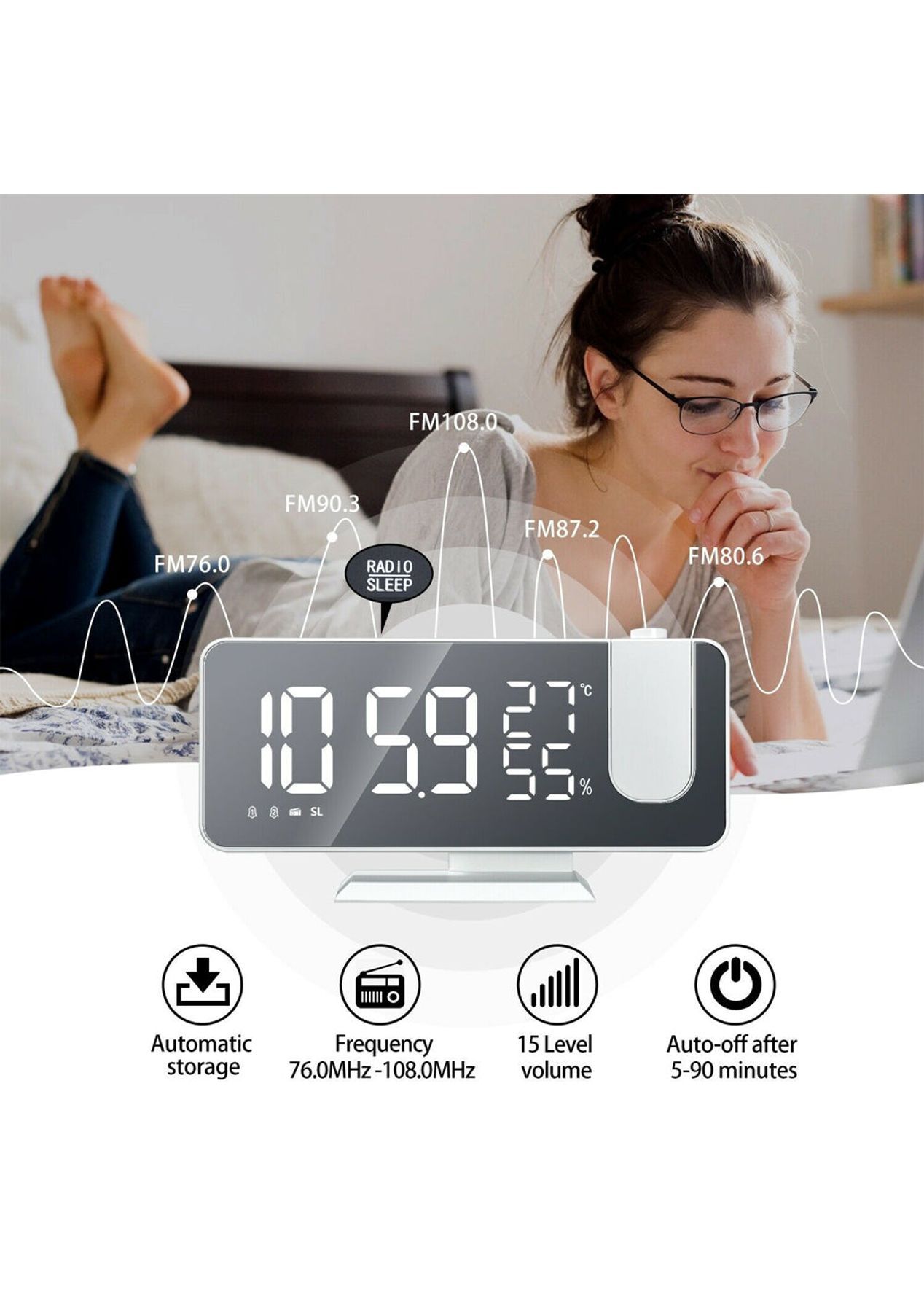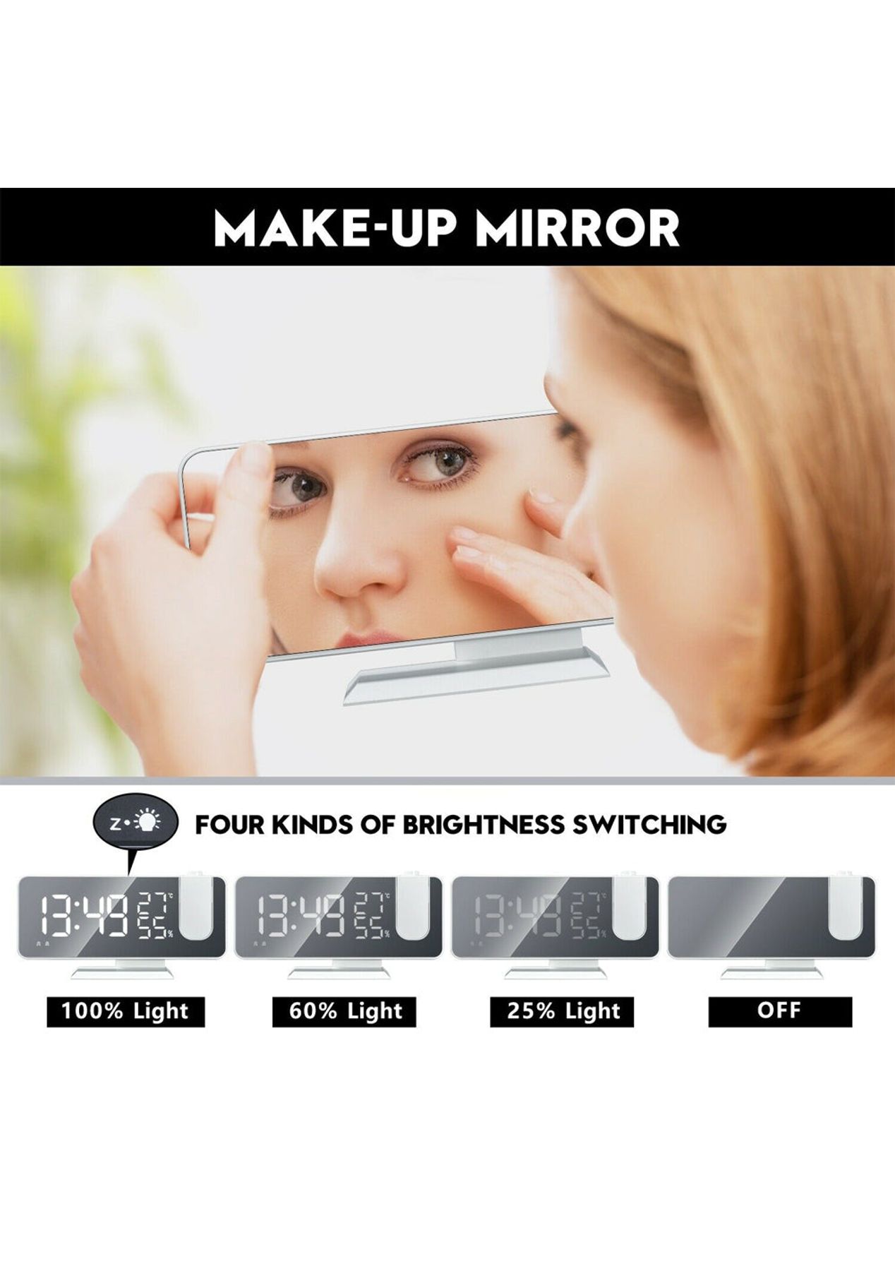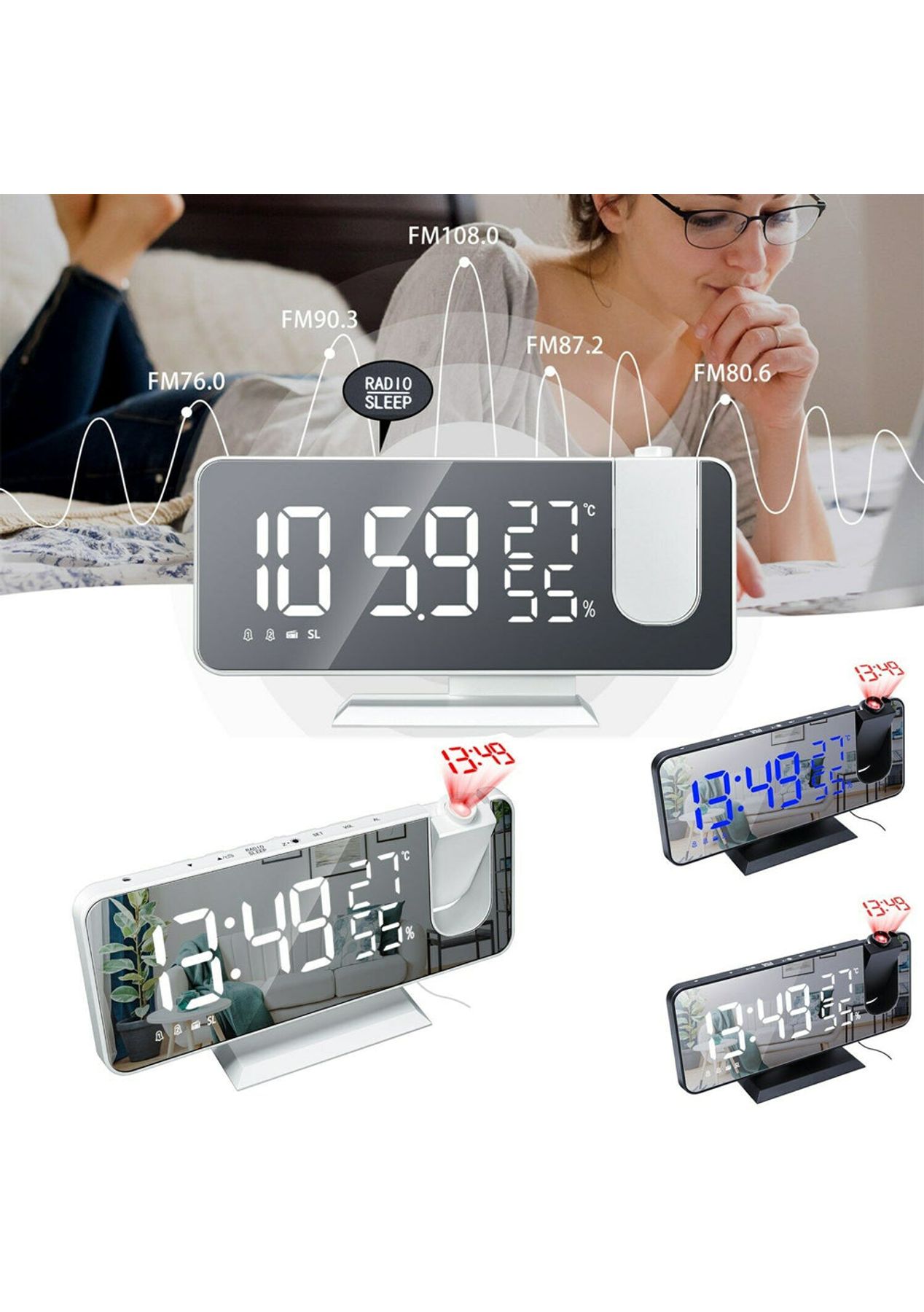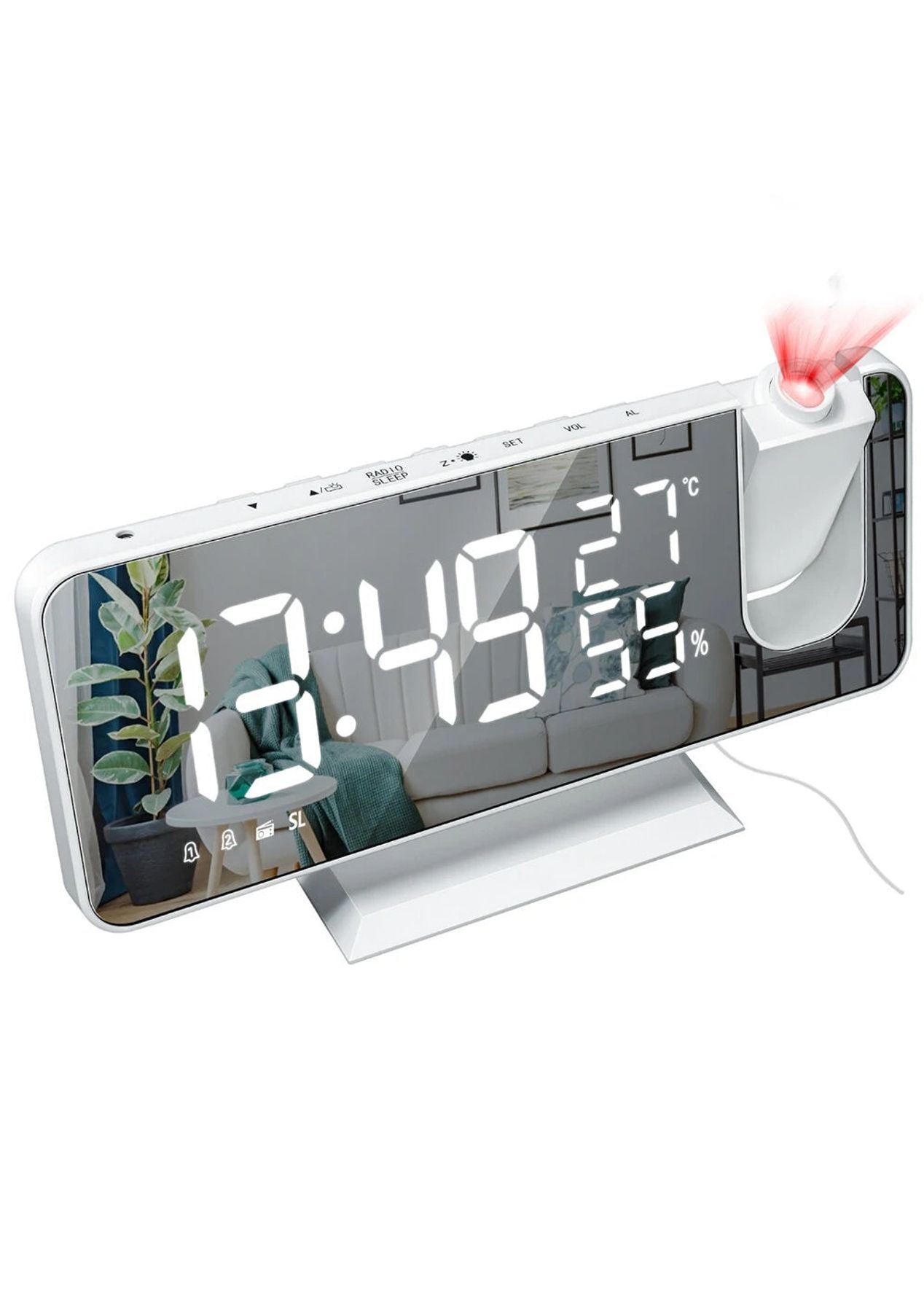 LED Big Screen Mirror Alarm Clock with Projection Display- USB Plugged in - White