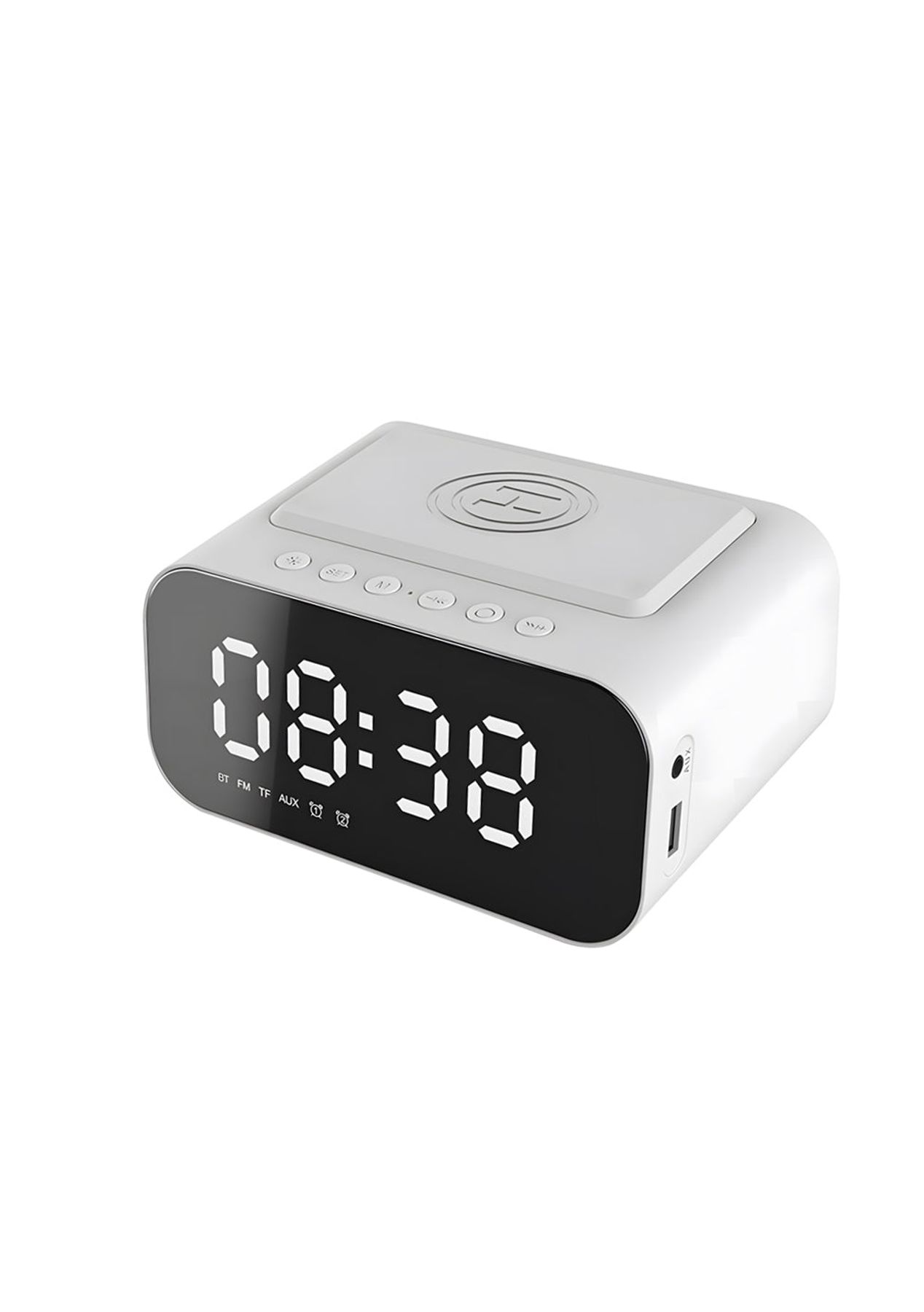 3-in-1 Wireless Bluetooth Speaker, Charger, and Alarm Clock- USB Power Supply - White