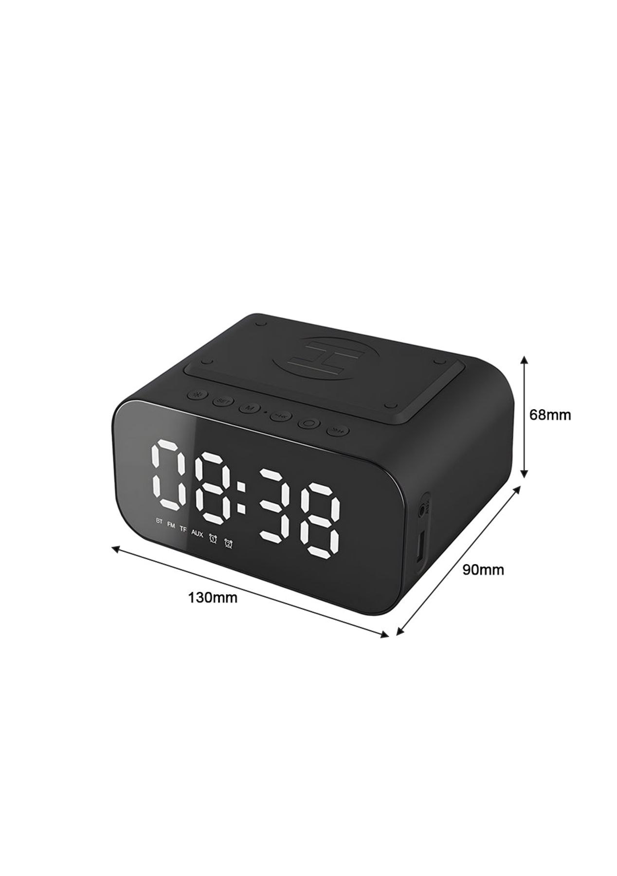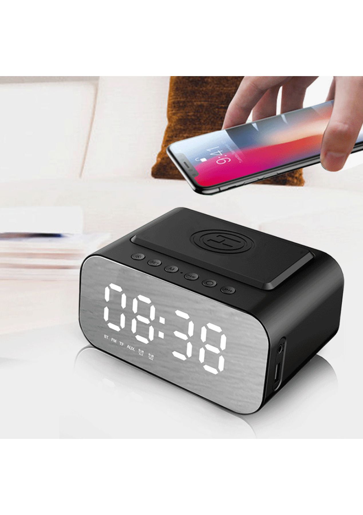Product Description: As a wireless speaker, this device is equipped with a powerful stereo subwoofer, bass, that produces thick and treble sound, with clear and powerful drum sound, and stereo bass stereo effect. It has a passive diaphragm, giving you a clear and powerful 4D HiFi stereo bass experience.It is made out of lightweight and durable ABS plastic shell, perfect for home and office, built-in 2000mAh rechargeable lithium-ion battery, can provide up to 6 hours of working time, very suitable for family, parties, picnics, trips.It also comes with a built-in FM radio, in addition to listening to co-workers listening to music, it also increases listening pleasure, listening to favorite radio stations, and leisure matters. With its built-in high-definition microphone, the mobile phone is easy to connect, the call sound is as clear and bright as music, and there is no delay to reduce noise.It also supports wireless charging, with 5W Qi certification standard, can be used with all Qi-compatible devices, including iPhone 8/8 Plus, iPhone X, iPhone Xs, iPhone Xs Max, iPhone Xr, Samsung Galaxy S9 / S9 + / S8 / S8 + / S7 and more, short circuit prevention, overvoltage protection, temperature control. The USB charger can conveniently charge mobile phones, iPods, and other electronic products.It has a full-size high-definition display, high-brightness LED backlight, support three-level brightness adjustment, considerate and energy-saving, multi-functional fashion, and non-monotonous customization. It allows you to wake up in the morning and sleep at night. The dual alarm clocks can be set and used independently.?Product Specification:Color: Black,WhiteMaterial: ABS, ElectronicsSize: 145*106*72mmWeight: 385gFunctions: Multifunctional ClockUsage Time: 6 hours (medium volume)Battery Information: 2000mAhSpeaker size: 50mmOutput Power: 10WPassive Vibration Diaphragm: 50mm x 1Port: AUX input, TYPE C, DC5V1ACharging power supply: DC5V2A / 9V2A.Output power: 5V / 9V, 1A == 2A 10W compatible with 5W, 7.5W, 10W matching automatic identificationFast charging: compatible with QC3.0 / QC2.0.?Package Inclusion:1 * Multifunctional Clock1 * Charging Cable1 * User Manual