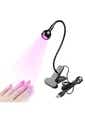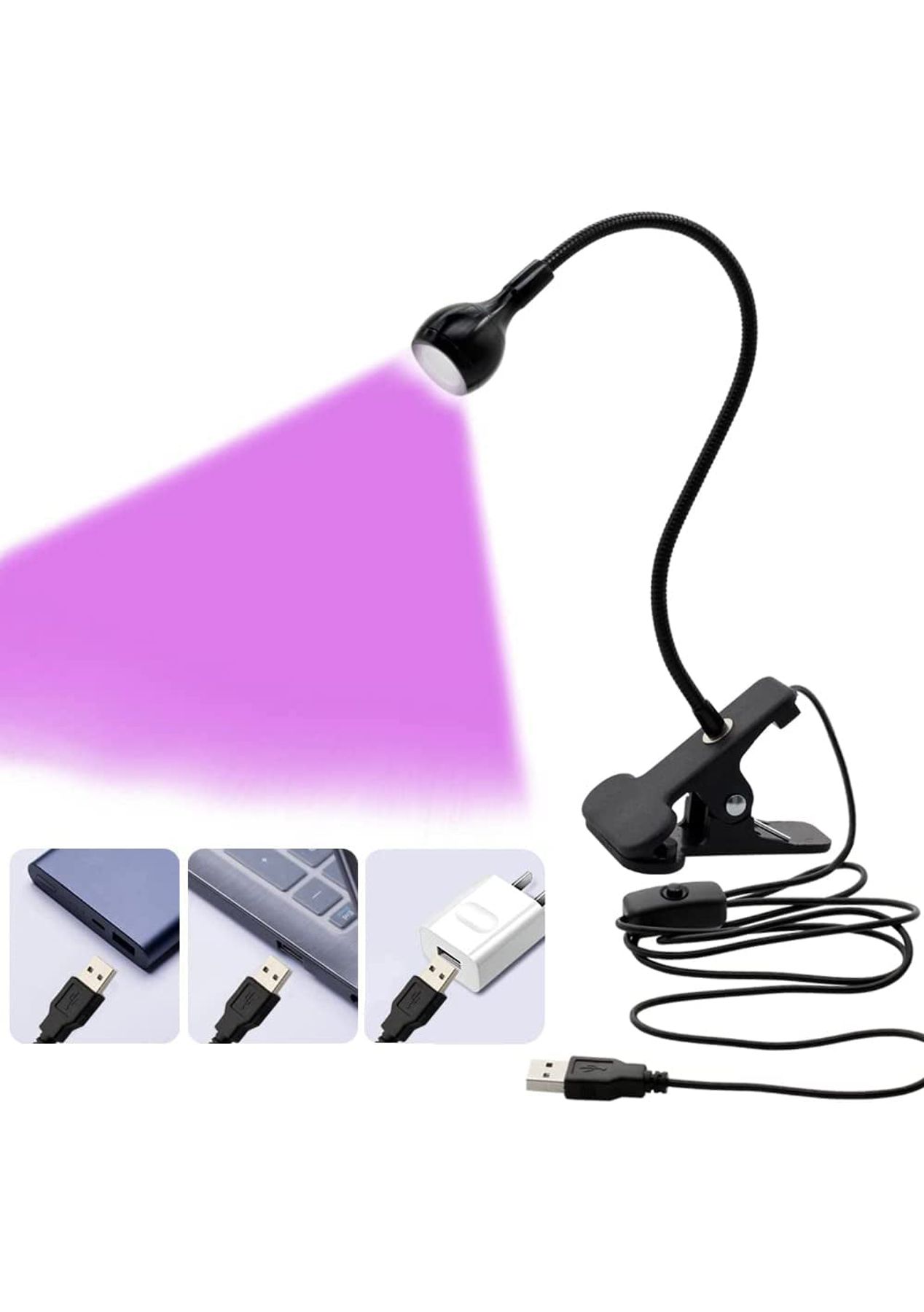 UV LED Black Light Fixtures with Gooseneck and Clamp for UV gel Nail - USB Plugged In - Silver