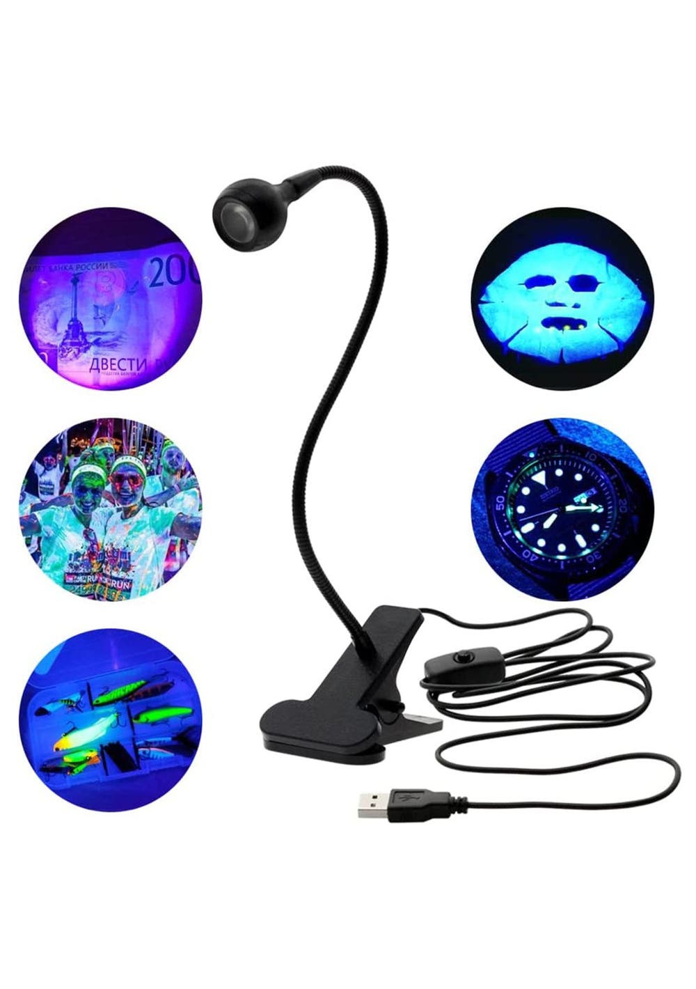 Product Description: 3W high-power led high-brightness light, no flicker, no glare, The light transmittance is as high as 95%, with the function of focusing light, more concentrated. 360 Flexible gooseneck arm UV black light, you can set the light to anywhere you want to get the perfect lamp lighting. The UV backlight is equipped with a clip, it can be opened 3 to 5 cm, the metal arm can bend flexibly, but at the same time it can fix the position. Just one button, easy to use. Easy to use with 5V DC USB powered (Doesn't Contain Adapter), black light can be plug into any USB devices such as power bank, computer, laptop, etc. Our UV LED gooseneck light can be widely used in many places, applied for detecting fluorescent paint, resin art, stain, curing, light posters, and is suitable for setting up a stall, glowing party, lights out party, outdoor barbecue, etc.