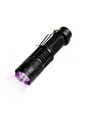 Product Description: This LED UV Flashlight is supermini in size. It also has a clip for your convenience. Perfect for travels and it fits well on your pockets and purses.This Mini Ultraviolet Flashlight has a skid-proof & waterproof design. You can use it while raining, without the worry of the flashlight slipping out of your hands.This Flashlight has an adjustable focus range for different usage; it has a zoom function and can stretch its light to adjust its focus.Use this to help detect counterfeit money, to ensure that there is no dirt residue on the things that you are cleaning, aid you in night fishing, use in according to traces of forensic class and detect urine stains from your pets.