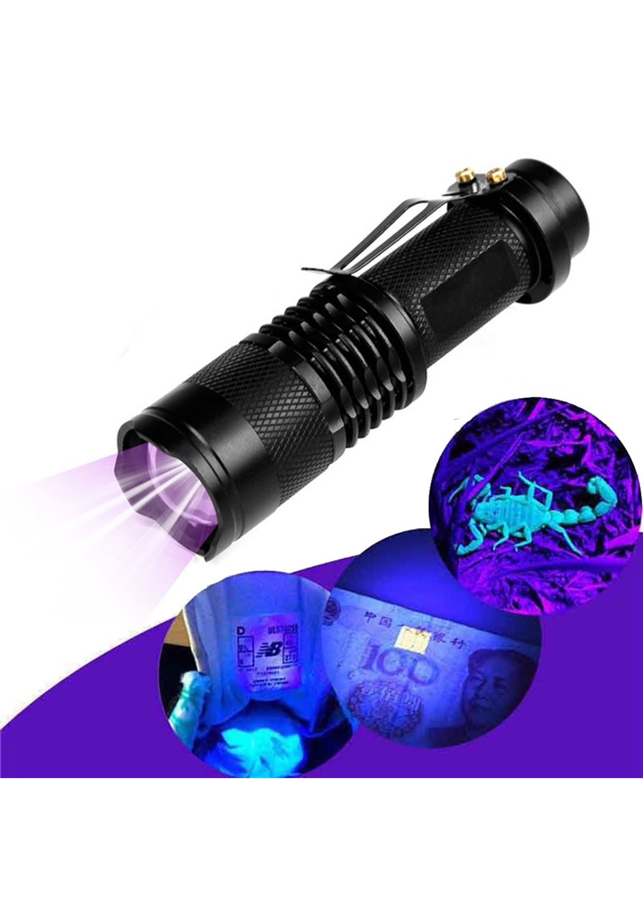 Mini LED Zoomable UV Flashlight Ultraviolet Flashlight Black Light Fake Bill and Urine Stain Detector- Battery Operated