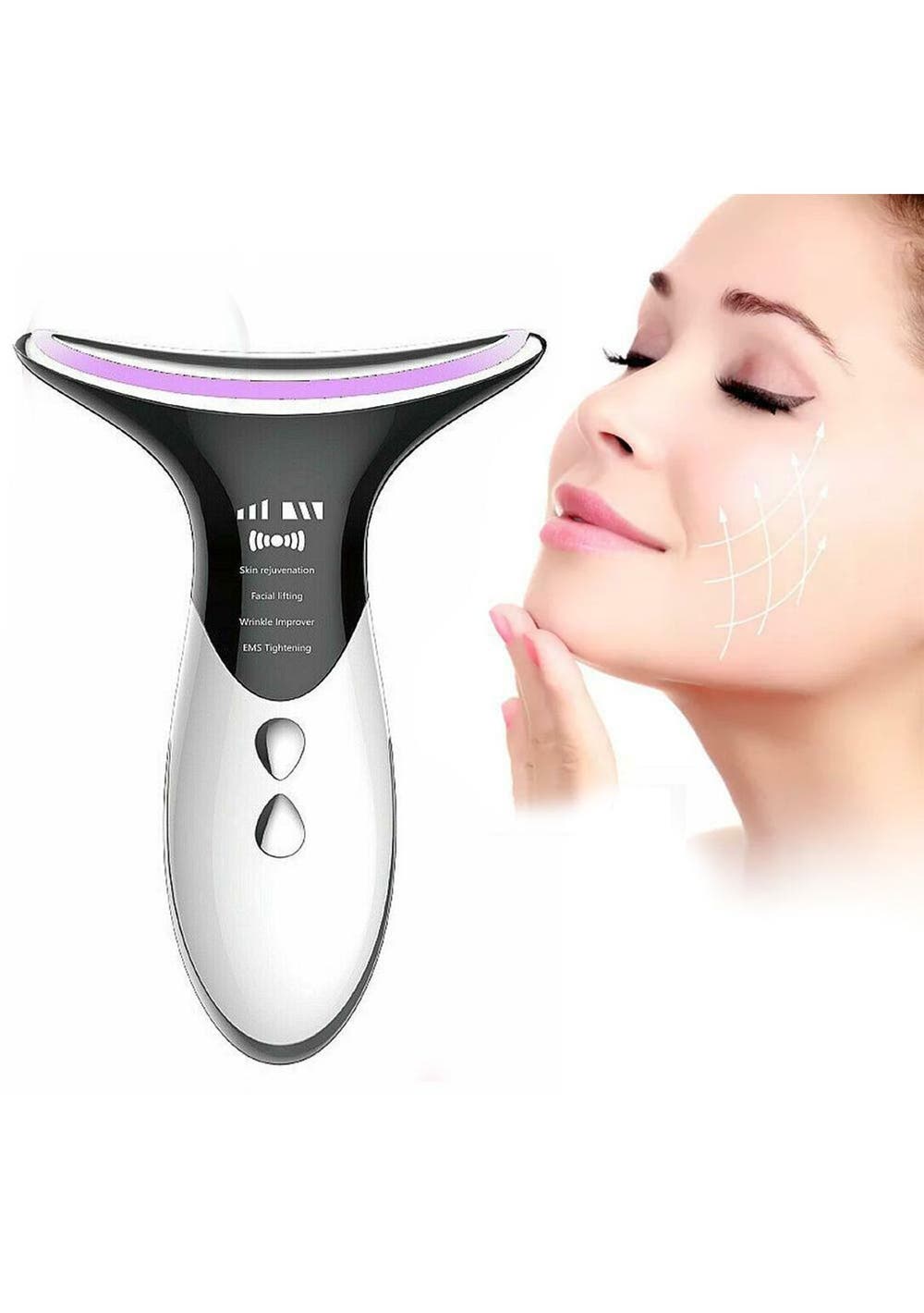Product Description: This Neck Massager comes with a hot function. At 45 ¡À5¡æ of magnetic heat warm the skin, combined with 3D massage to promote the absorption of skincare products. It has 3 different massage modes, which scrape the dirt off the skin layer and slows down the process of skin aging.This device emits 3 different lights with corresponding functions. Blue light is the coldest light, can promote the production of protein and collagen, activate the skin, tighten the loose skin and shrink the pores that are good for oily skin and sensitive skin. The Greenlight promotes the skin surface s micro-circulation and dredges the lymphatic & edema. While the Red Light can increase cell vitality, accelerate blood circulation, and promote the growth of fibroblasts and collagen.The is device produces 11000 times /min of sonic vibration. This neck firming device can stimulate the neck acupuncture points, clear the meridians, improve circulation and promote metabolism, promote the discharge of long-accumulated waste, slow skin cell aging, remove neck wrinkle.To use this device, apply some skincare products to your neck and face. Use the massage head close to your neck, lifting from the bottom several times. Then focus on the face skin and lift, to make the skin tightened. Prolong usage can lift your wrinkles, remove double chin, smile lines, eye wrinkles and activate your skin cell.?Product Specification:Color: White and BlackMaterial: ABS, PCSize: 126.2 * 92 * 37mmWeight: 250gFunctions: Skincare deviceCharging Time: 3.5 hoursBattery Information: 750mAhCharging Interface: USB Vibration frequency: 11,000 times/minHeating temperature: 40¡æ/45¡æCharging voltage: dc 5.0vRated current: 0.5ARated power: <= 2.5w?Package Inclusion:1 * Neck Massager1 * USB Charging Cable 1 * User Manual
